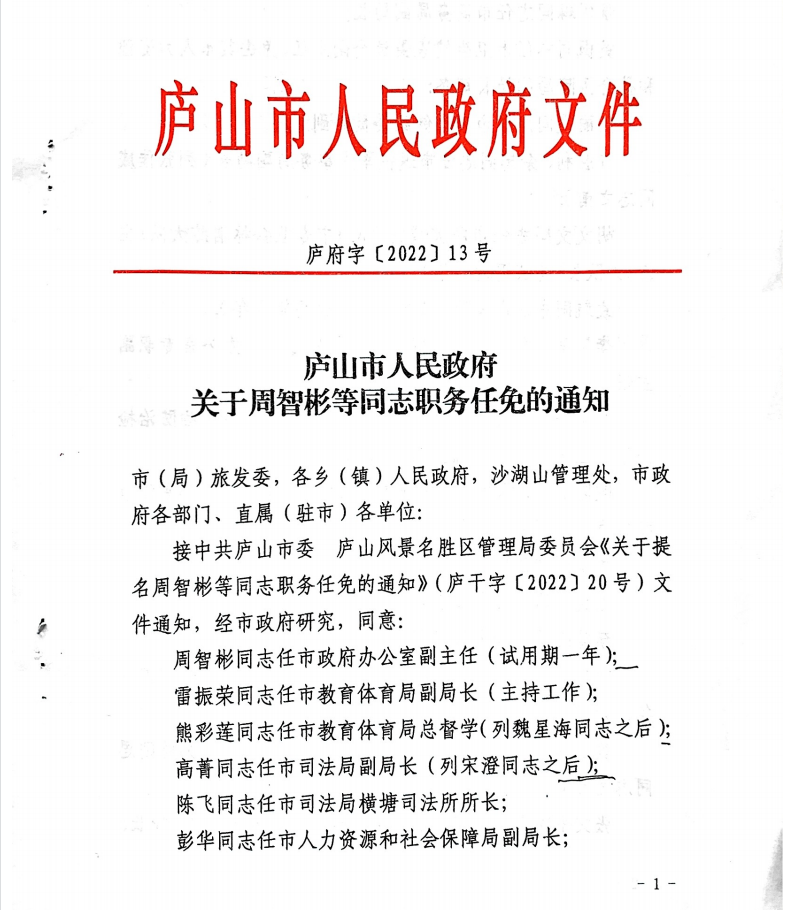 关于周智彬等同志职务任免的通知