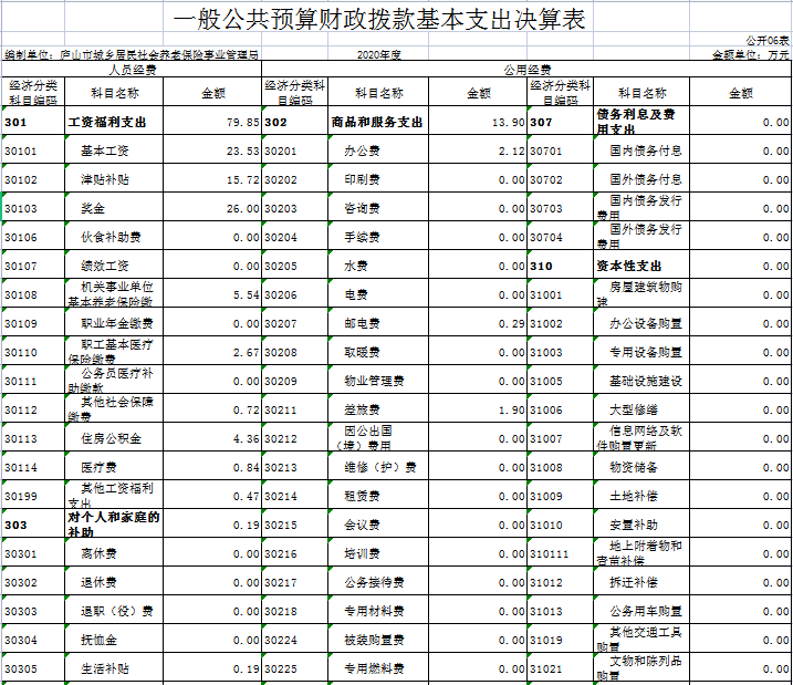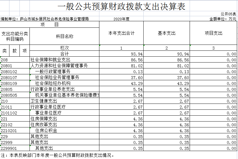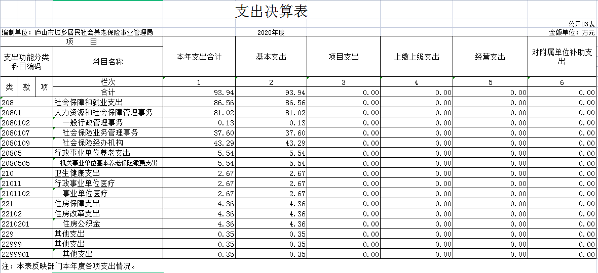 2020年农保局部门决算公开
