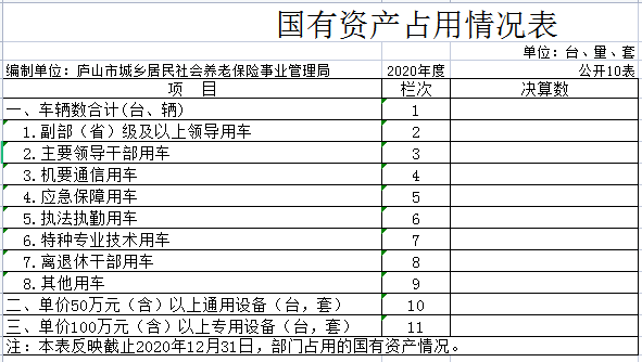 十、国有资产占用情况表