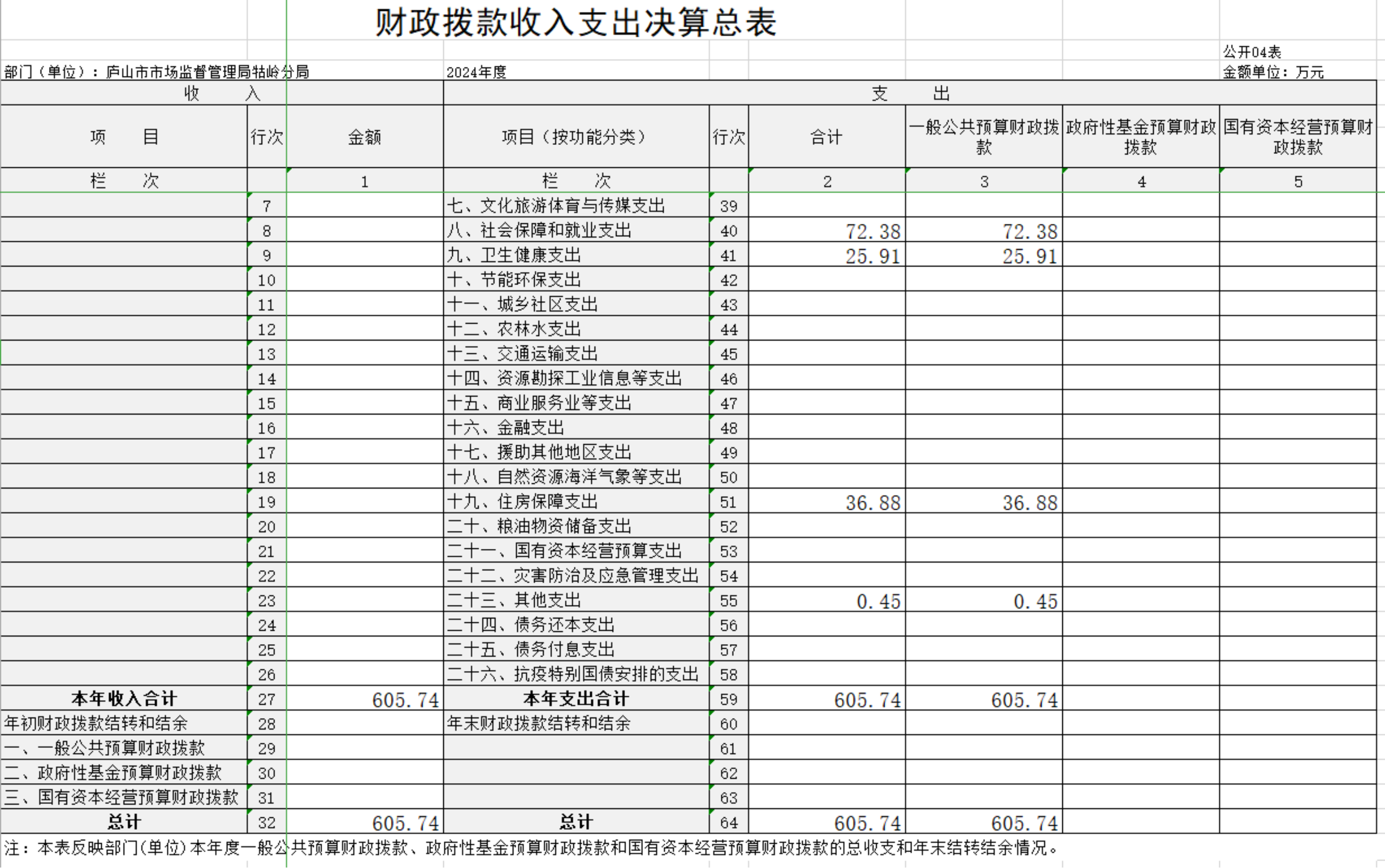 本单位2024年度支出总计605.74万元,其中本年支出合计605.74万元,比上年减少18.91万元,减少3.03%,主要原因:2023年支付1名退休人员去世抚恤金;结余分配0.00万元,与上年持平;年末结转和结余0.00万元,与上年持平,主要原因:根据相关政策要求,结余资金需上缴国库。