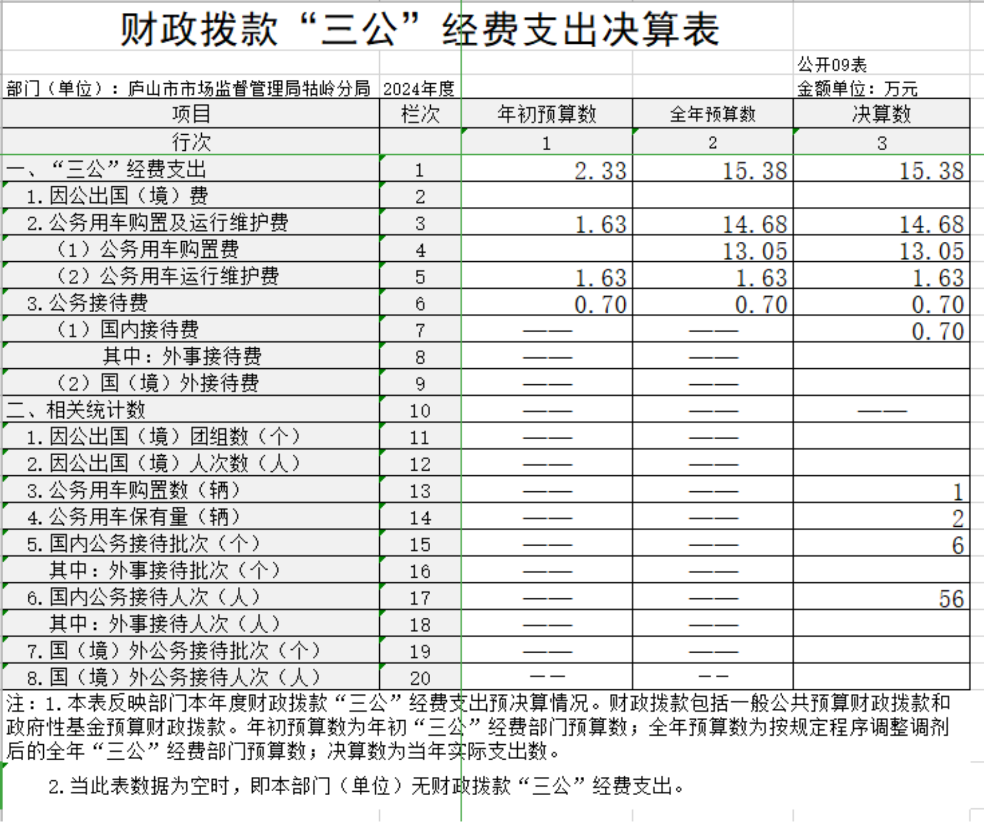 本单位2024年度财政拨款“三公”经费支出全年预算数15.38万元,决算数15.38万元,完成全年预算的100.00%;决算数比上年增加13.05万元,增长560.09%,其中: