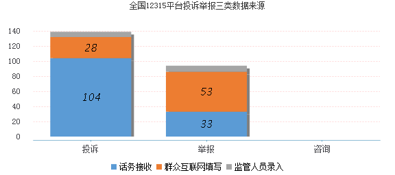 从平台三大数据来源来看,话务接收0.01万件,占比58.8%;群众互联网填写0.01万件,占比34.76%;监管人员录入(邮箱、来函、其他部门转办等)0万件,占比6.44%。