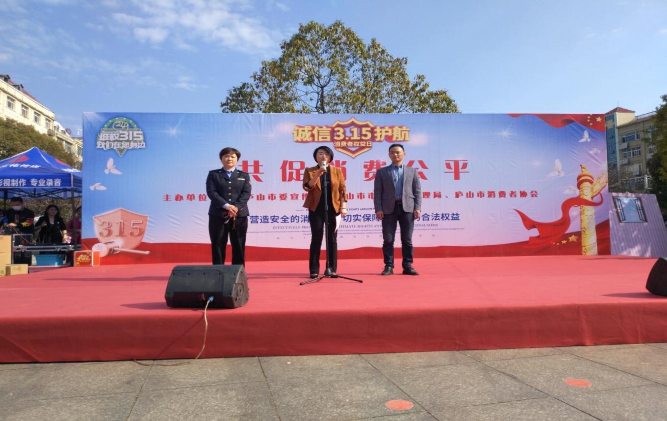 庐山市人民政府副市长邹菲,市场监管局党组书记、局长黄熙霞,中共庐山市委宣传部副部长龚凡杰出席宣传活动,邹菲在致辞中指出:消费者权益保护工作是一项涉及千家万户,与人民群众生活密切相关的民生工程,需要全社会共同关心、共同参与。希望社会各界共同努力,履行好各自应尽的责任,携起手来奋力谱写新时代庐山全面进位赶超新篇章,以优异成绩迎接党的二十大胜利召开。