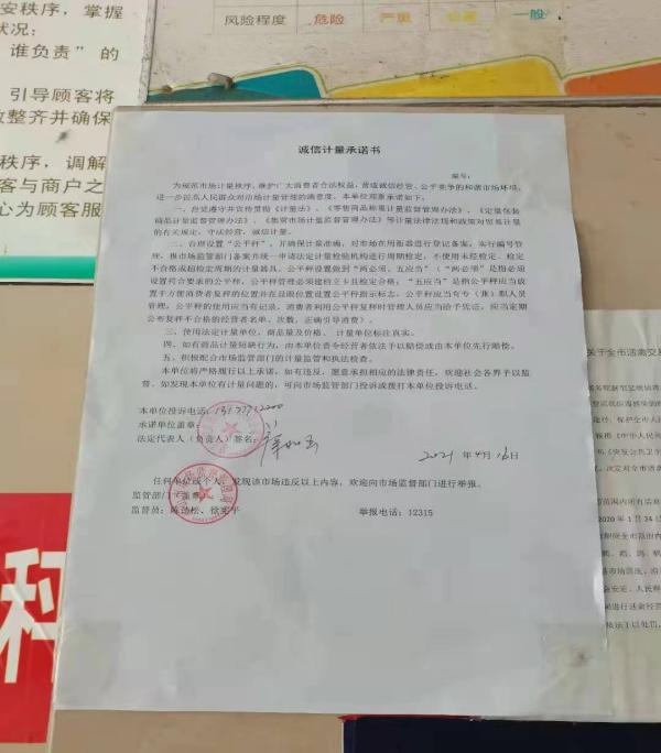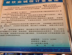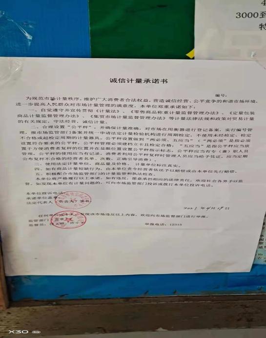 (六)为给消费者营造一个公平、诚实、信用、健康的消费环境,我局按照往年工作惯例继续要求,我市服务行业开展诚信计量承诺活动,今年共对集贸市场、眼镜店、餐饮、医院、加油站等行业开展相关活动共新增诚信计量自我承诺单位36个,促使经营者做到自我约束、自我管理、自我示范,促进信用为本、诚实守信、自觉自律良好风气。