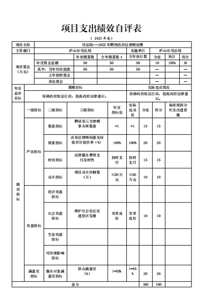 费、司法局---2023年聘用政府法律顾问费项目支出绩效自评表”如下: