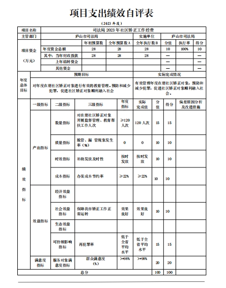 绩效评价对象和范围:支持庐山市司法局社区矫正工作开展。