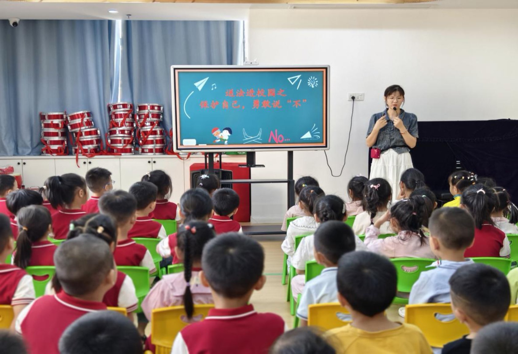 为进一步加强幼儿法治安全教育,提高学龄前儿童自我防范和保护意识,营造平安、和谐、健康的校园环境,9月24日上午,庐山市司法局法治副校长毛双走进庐山市第四幼儿园,开展“法治副校长”送法进校园活动,面对面给小朋友们带来精彩的法治启蒙教育课。