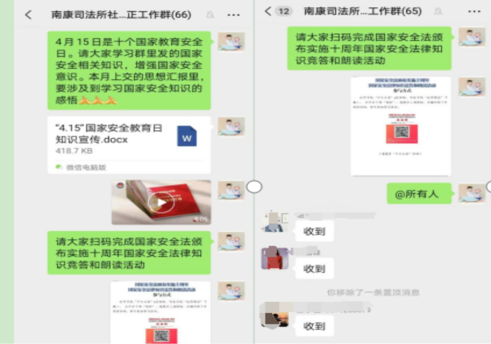 多媒体展示直观呈现:利用电视、大屏幕等设备,播放国家安全警示教育片、宣传视频等资料。以真实案例和生动画面,直观展示危害国家安全行为带来的严重后果,使社区矫正对象深刻认识到维护国家安全的紧迫性和必要性。同时,在社区矫正工作群等平台推送国家安全相关法律法规、宣传文章和视频,方便社区矫正对象随时学习。