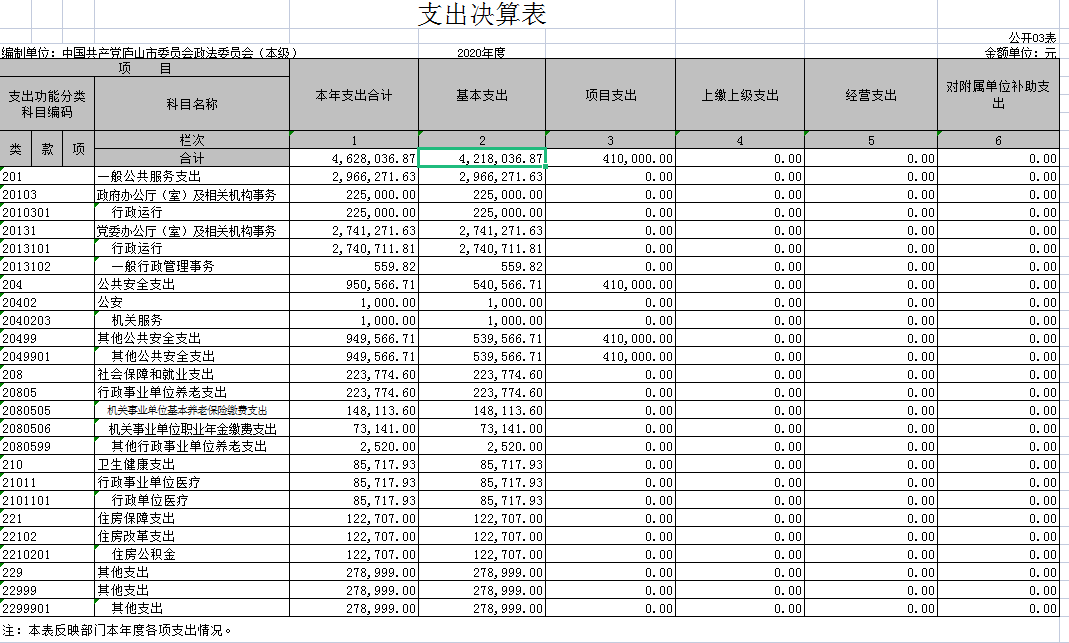 部门2020年度支出合计4462.8万元,其中:基本支出421.8万元,占91%; 项目支出41万元,占9%;上缴上级支出0万元,占0%;经营支出0万元,占0%;对附属单位补助支出0万元,占0%。