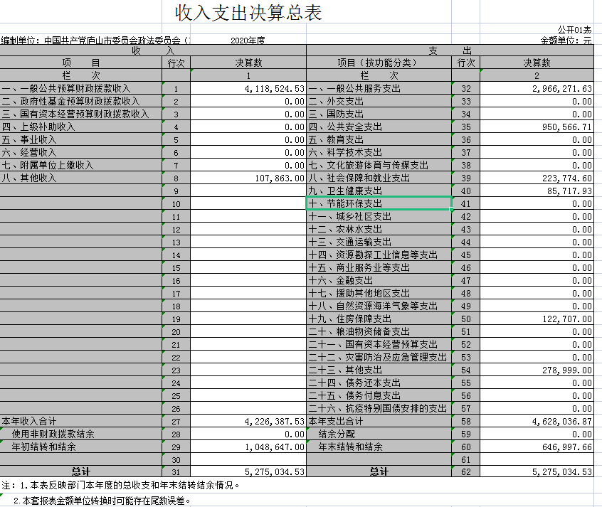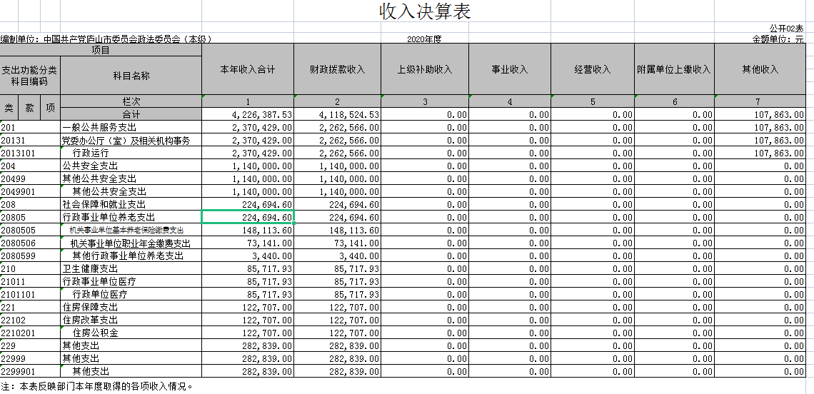 本部门2020年度收入总计527.5万元,支出总计527.5万元。与2019年决算数相比,收入增加32.39万元,增长6.5%,支出增加、32.39万元,增长6.5%。主要原因是多元调处中心建设支出。其中:财政拨款收入411.85万元,占78%;上级补助收入0万元,占0%;事业收入0万元,占0%;经营收入0万元,占0%;附属单位上缴收入0万元,占0%;其他收入10.86万元,占2%,年初结转结余104.87万元,占20%。