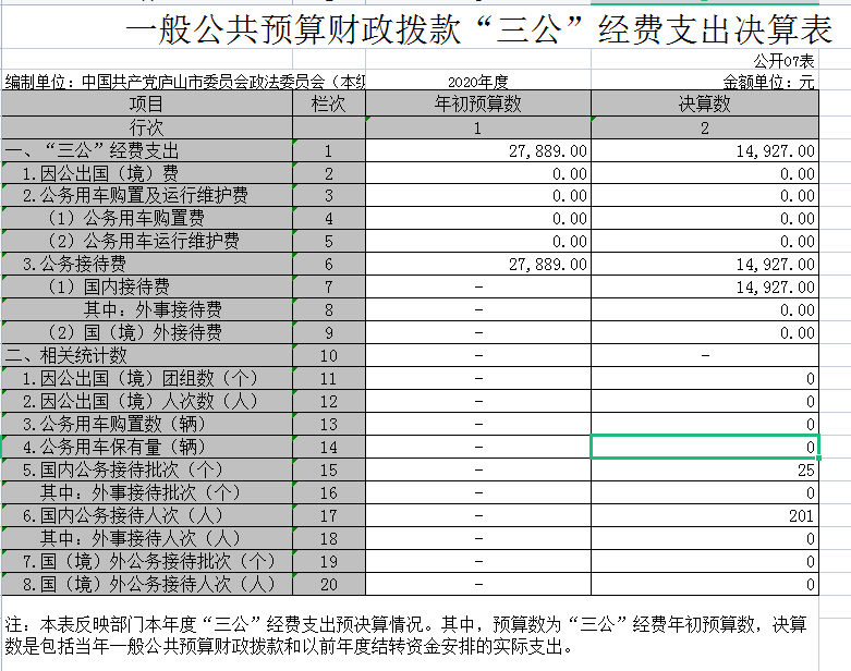 (十二)“三公”经费:指用一般公共预算财政拨款安排的因公出国(境)费、公务用车购置及运行维护费、公务接待费。其中,因公出国(境)费反映单位公务出国 (境)的国际旅费、国外城市间交通费、住宿费、伙食费、培训费、公杂费等支出;公务用车购置费反映单位公务用车购置支出(含车辆购置税);公务用车运行维 护费反映单位按规定保留的公务用车燃料费、维修费、过路过桥费、保险费、安全奖励费用等支出;公务接待费反映单位按规定开支的各类公务接待(含外宾接待) 支出。