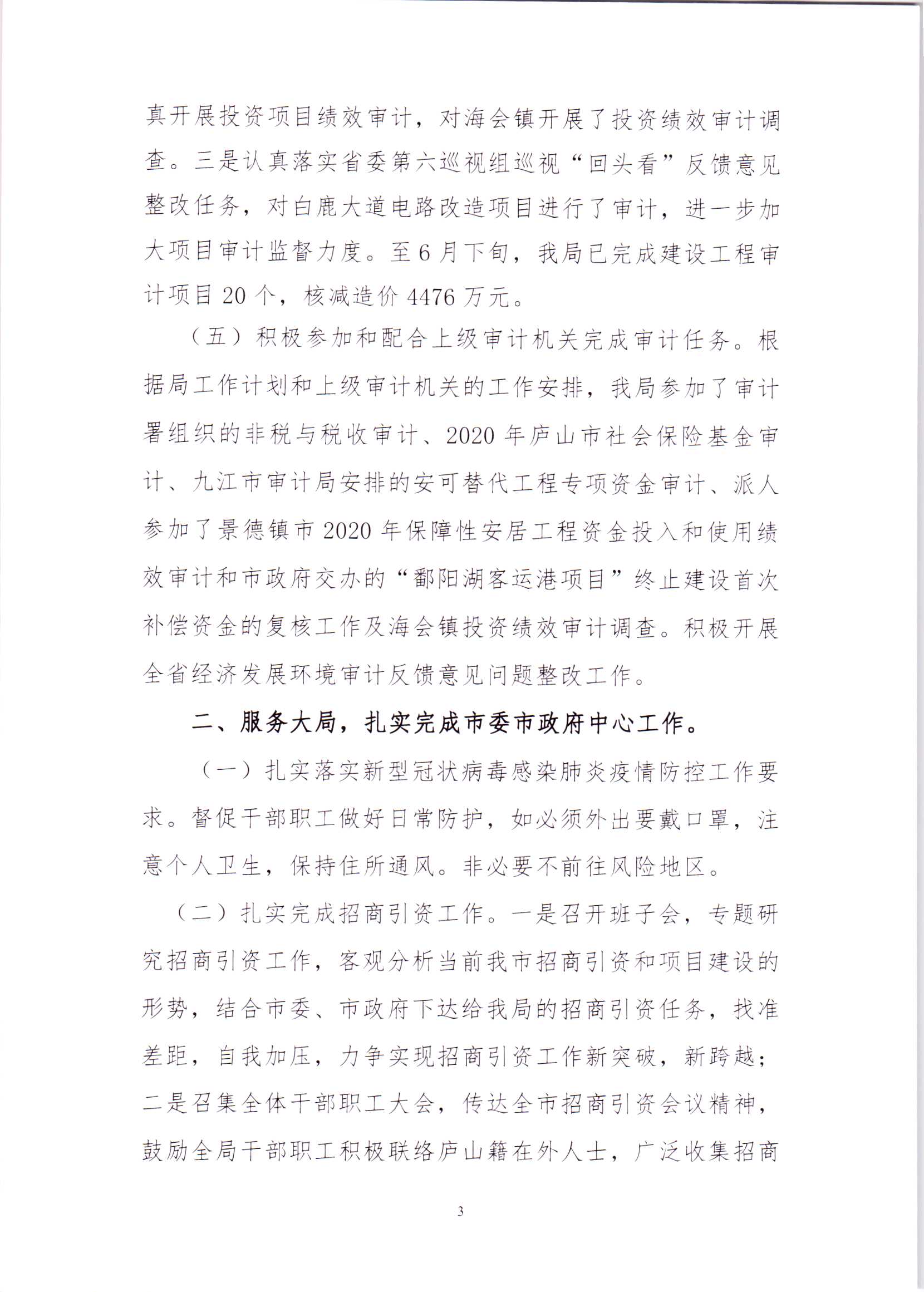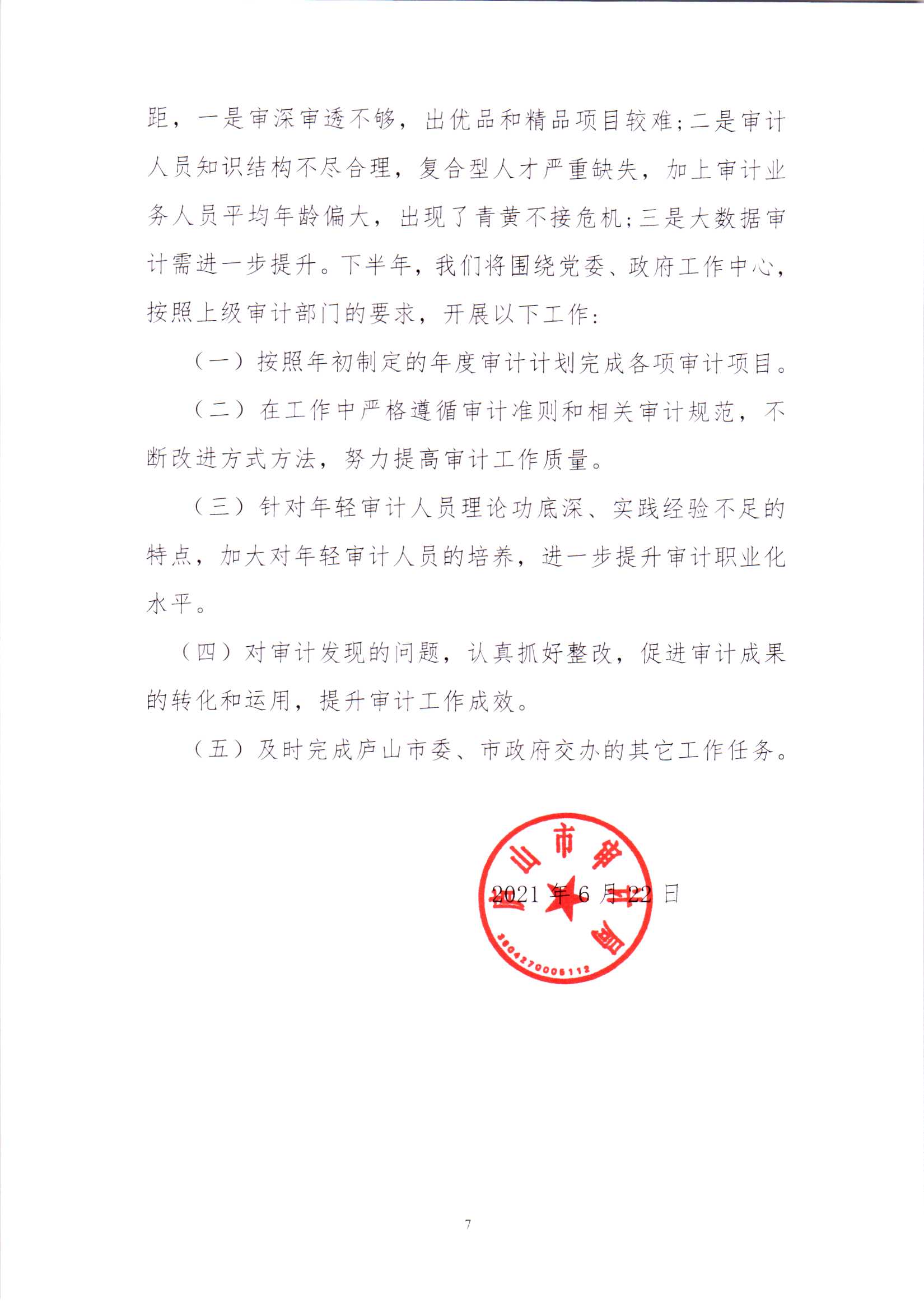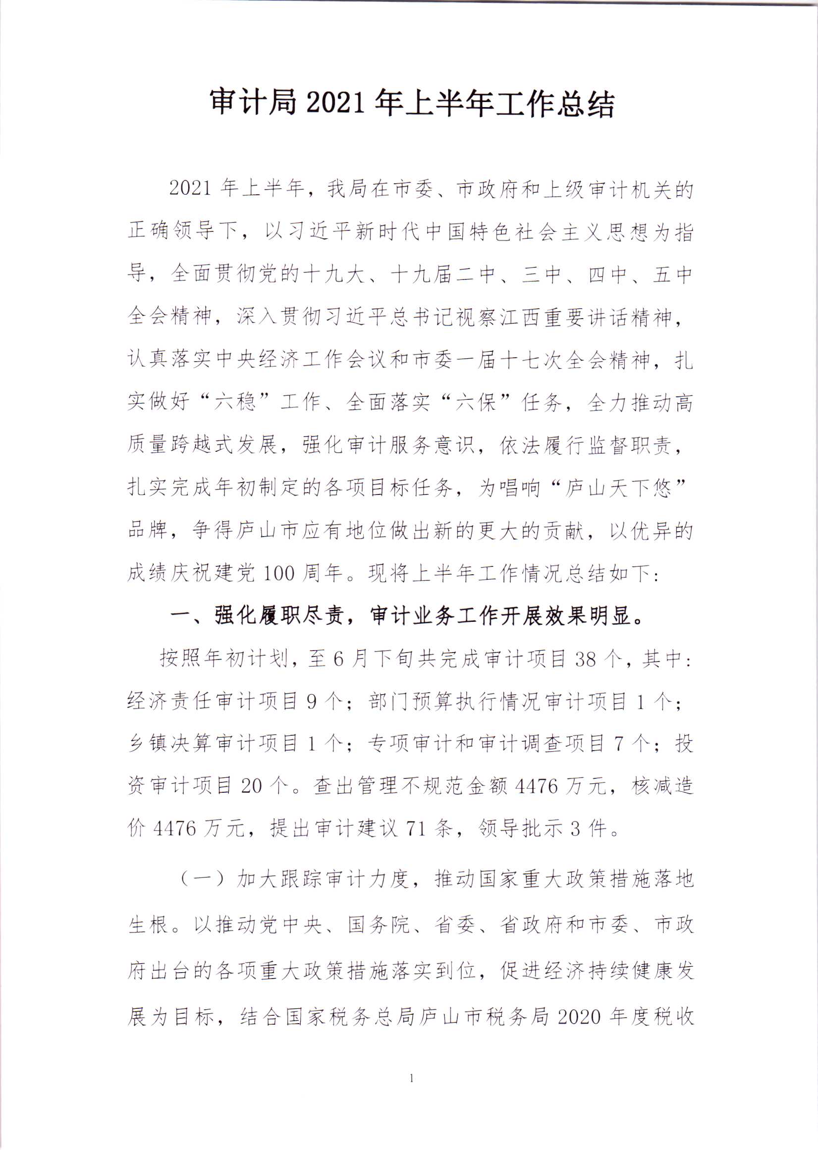庐山市审计局2021年上半年工作总结