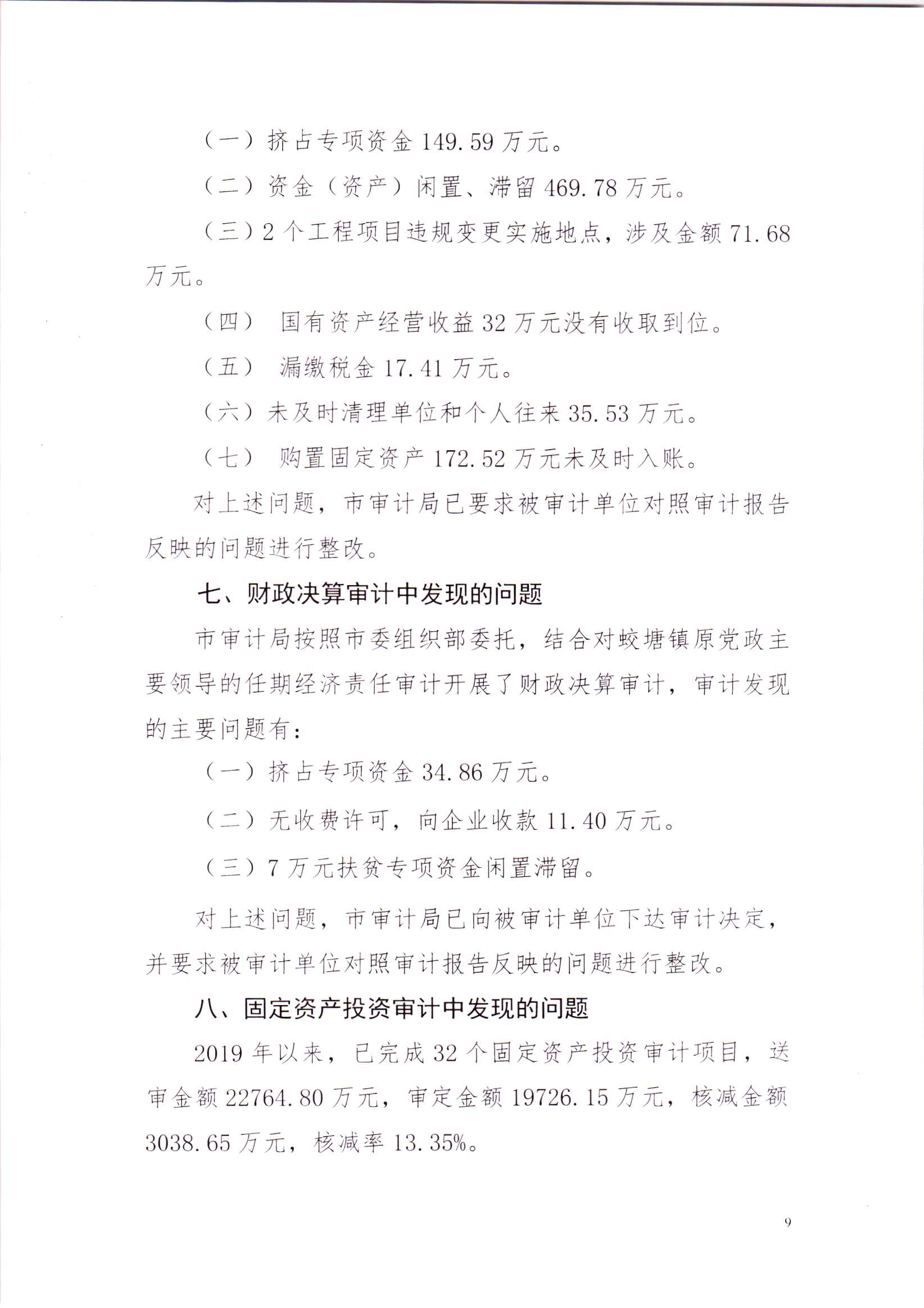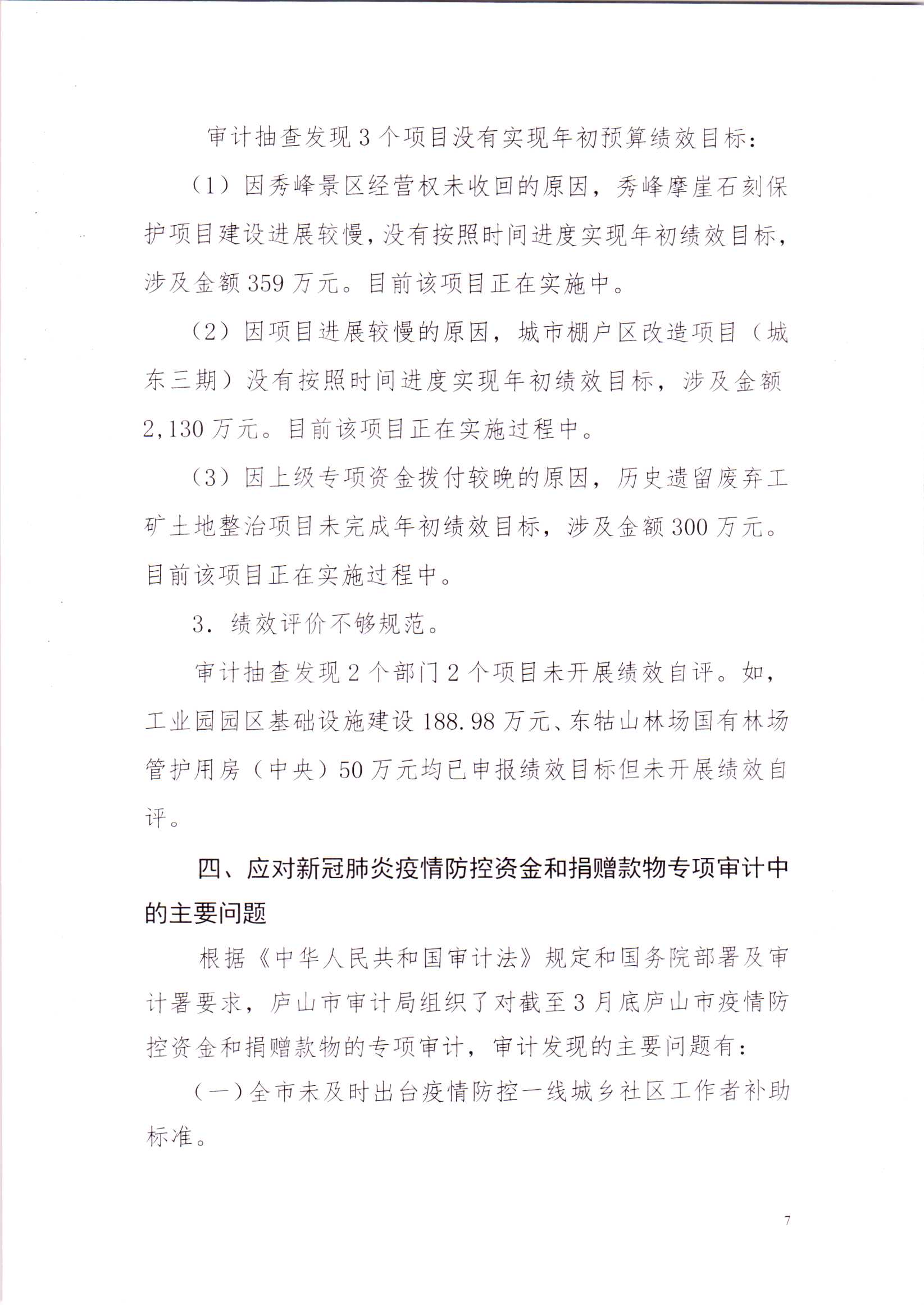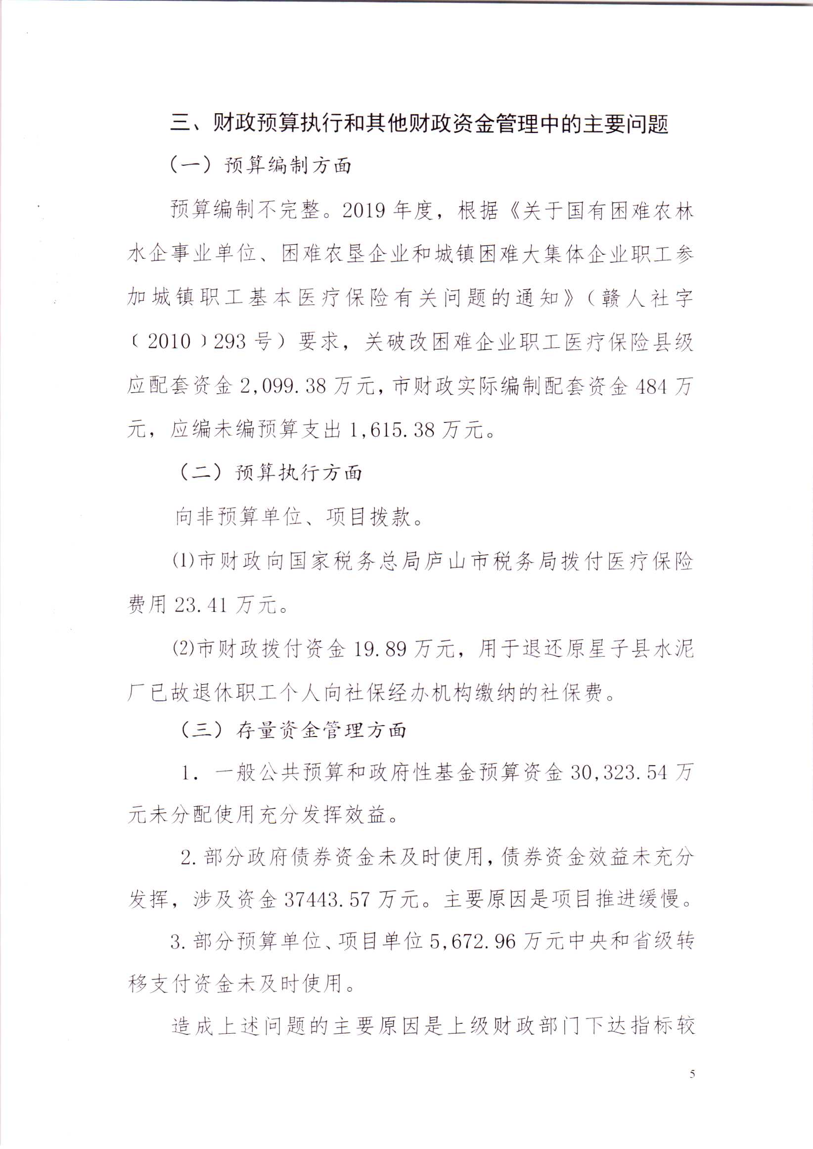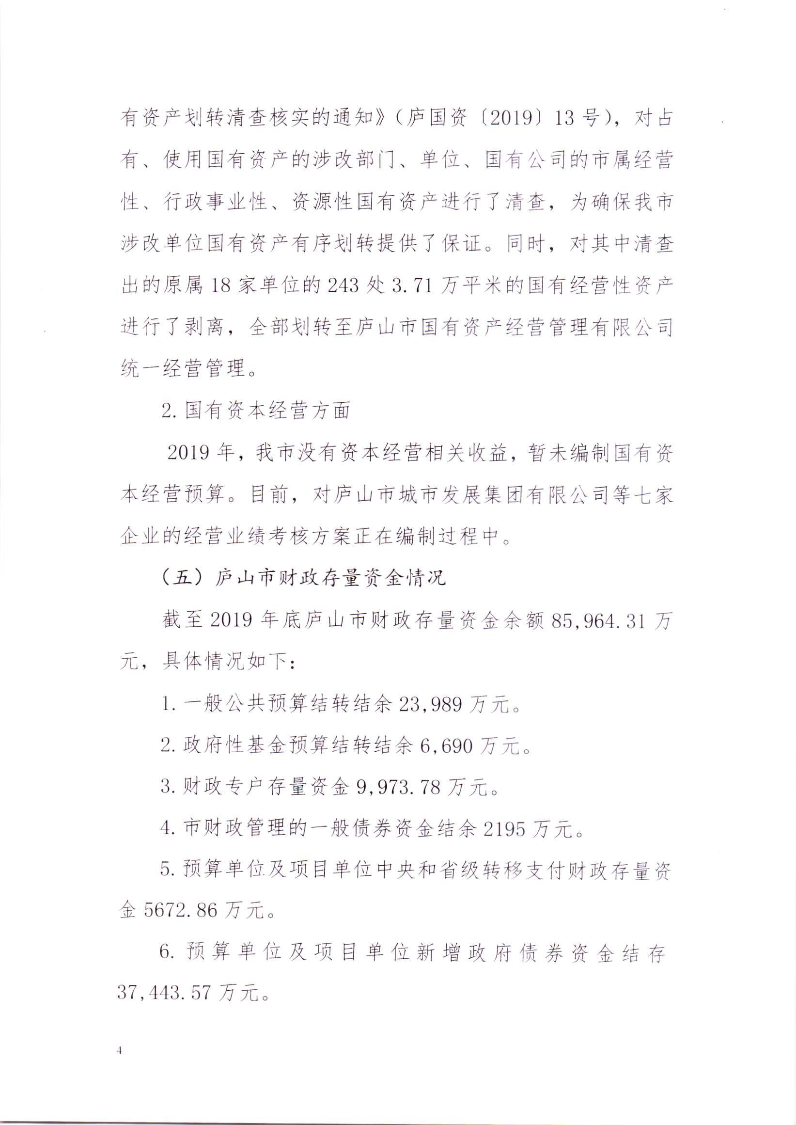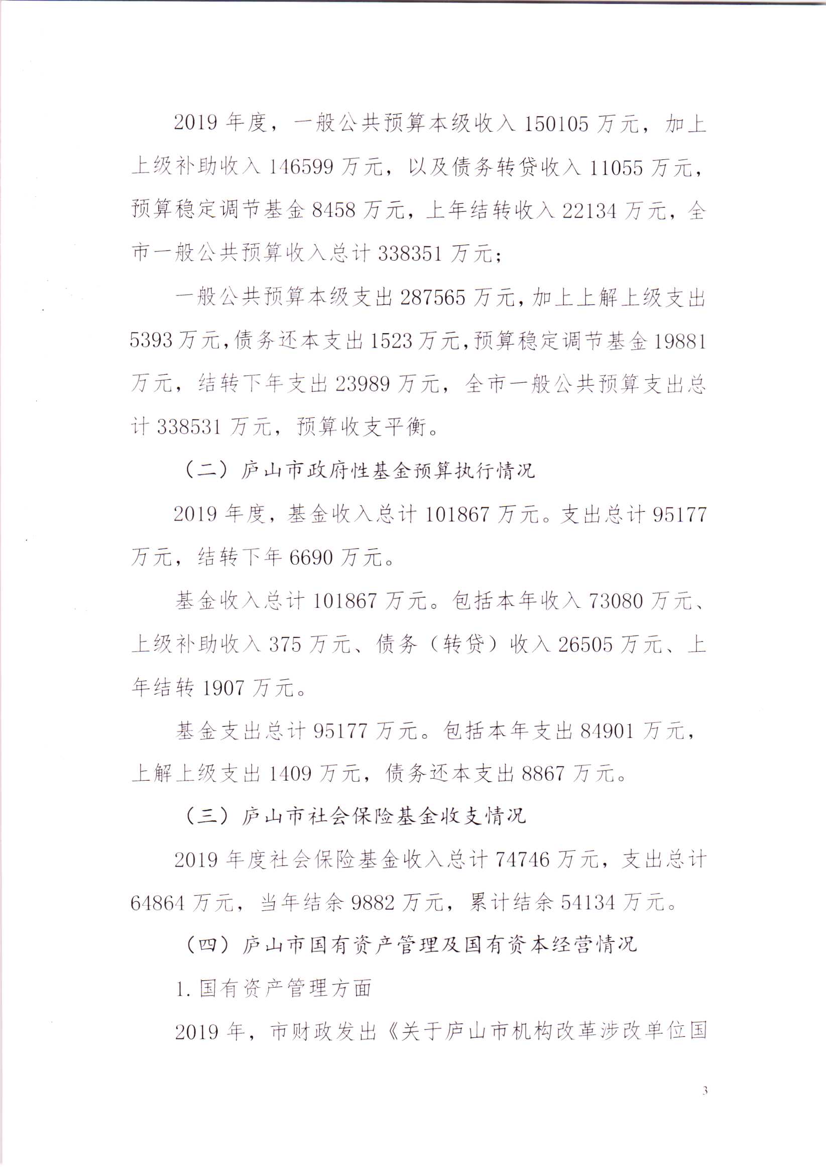 关于庐山市2019年本级预算执行及其他财政收支的审计工作报告(摘要稿)
