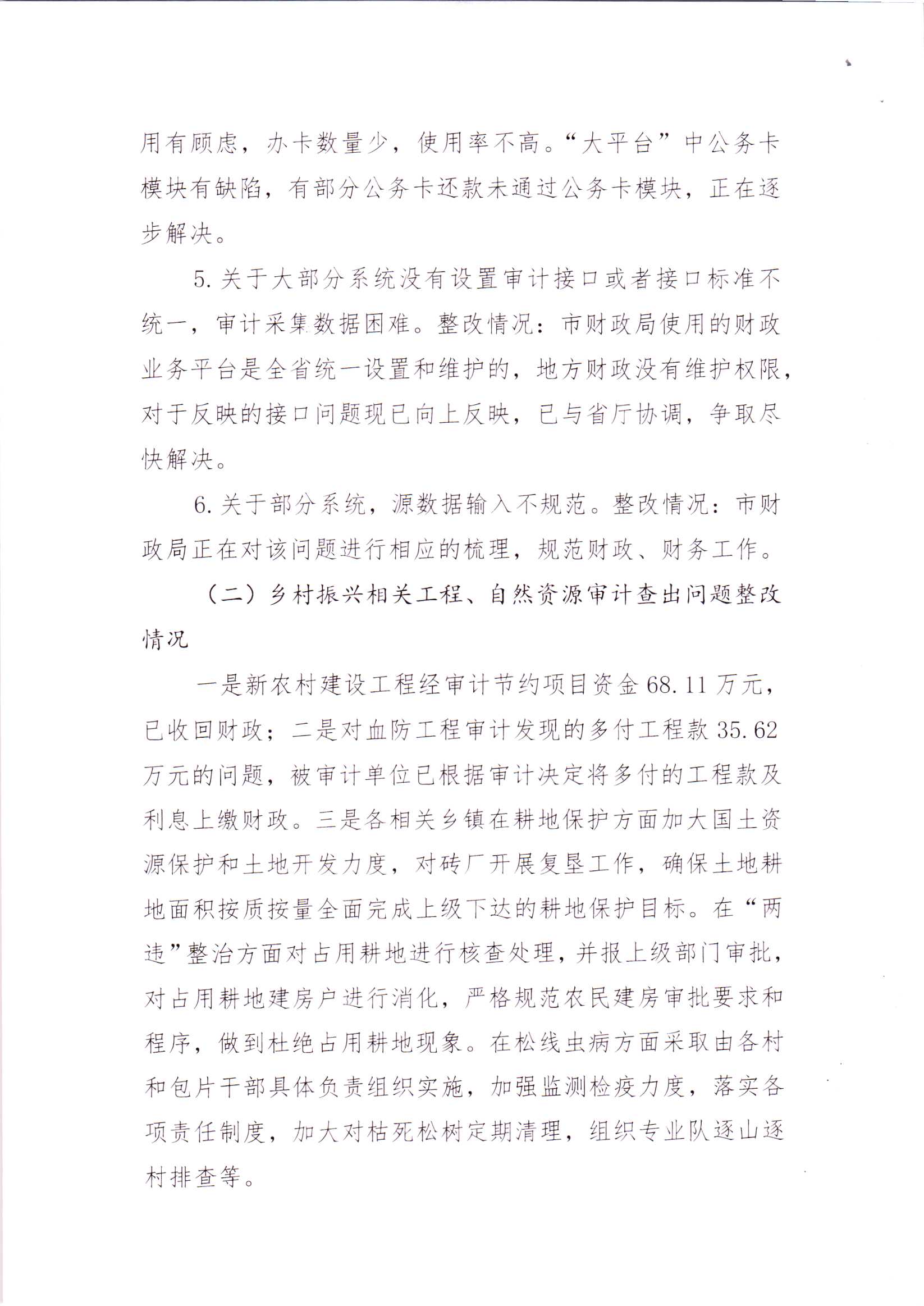 关于庐山市2019年度预算执行审计工作报告整改情况