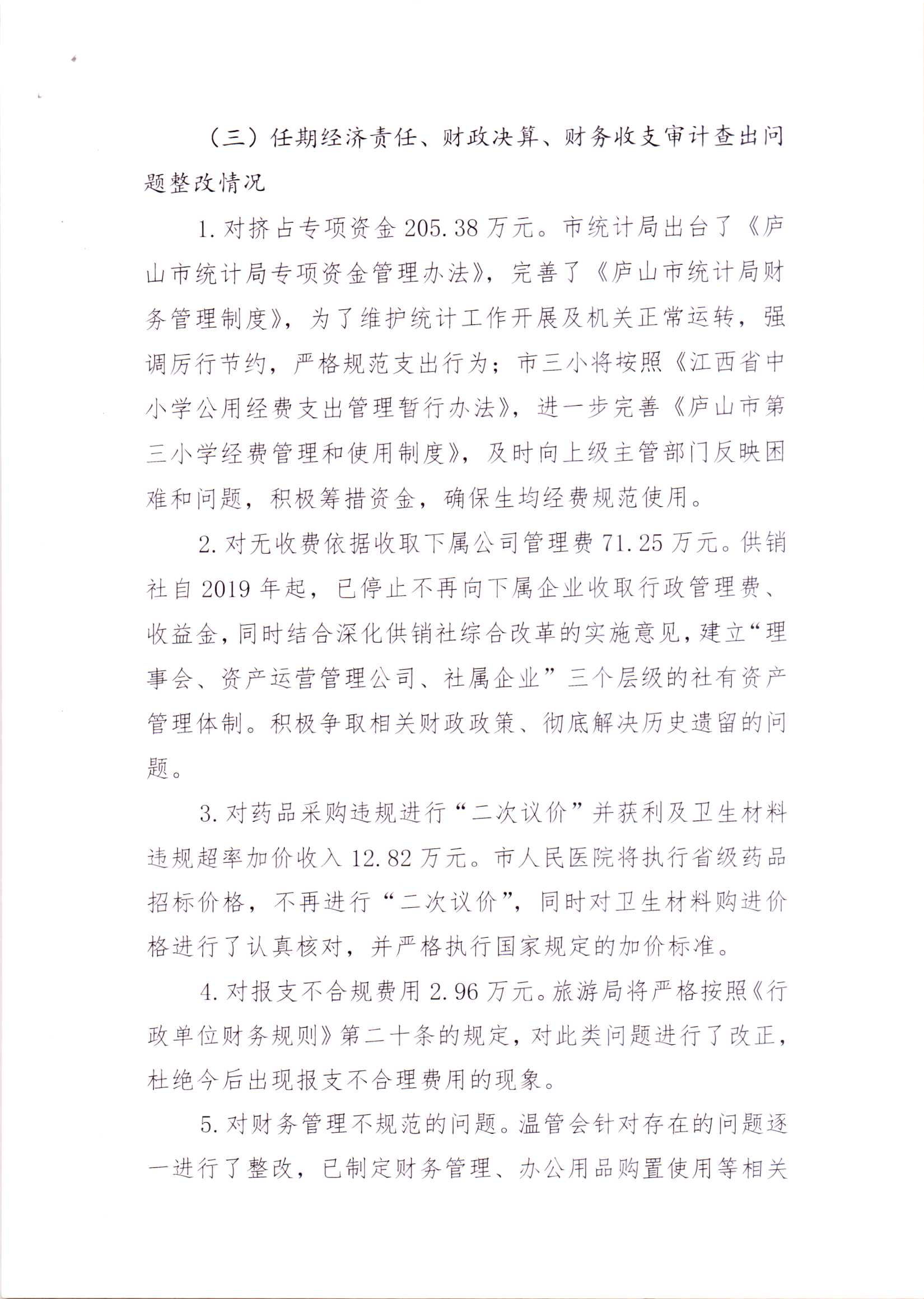 关于庐山市2019年度市本级预算执行审计工作报告整改情况