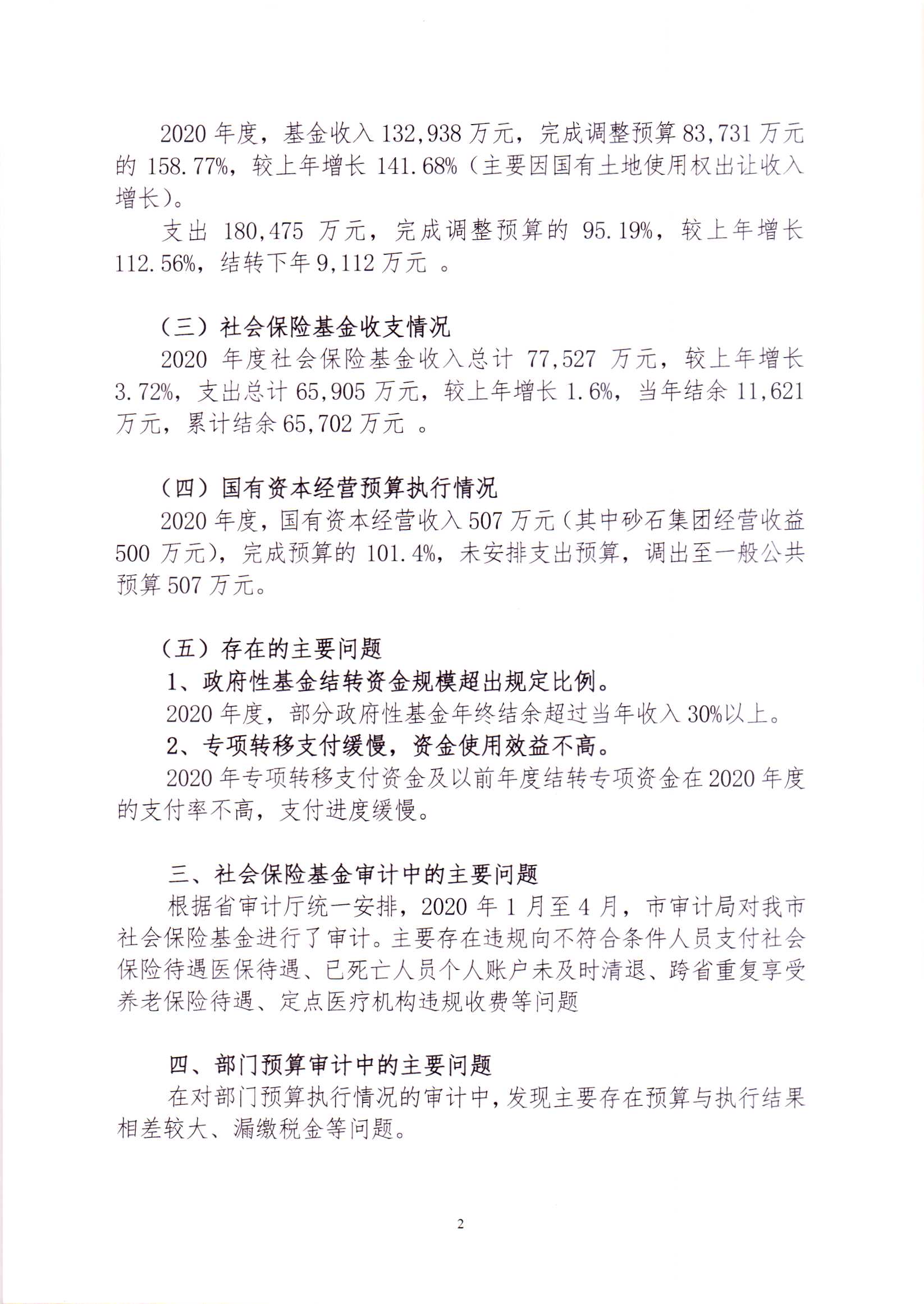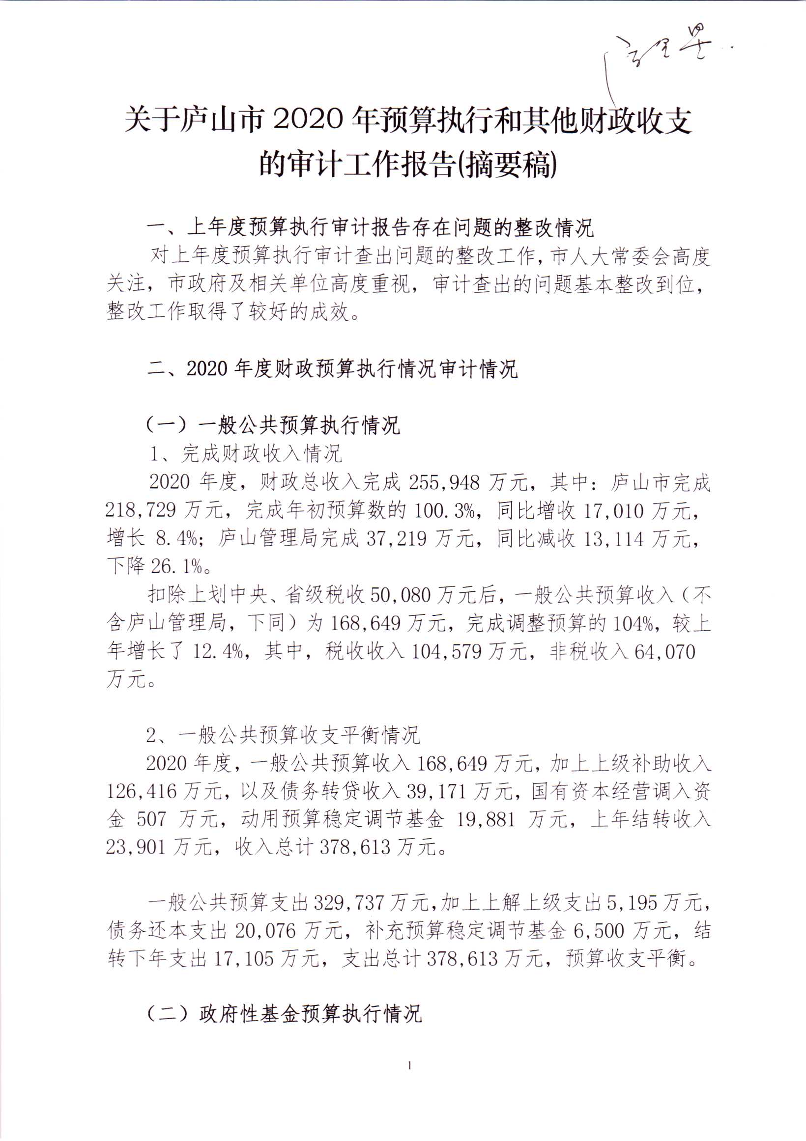 庐山市2020年预算执行和其他财务收支审计工作报告(摘要稿)