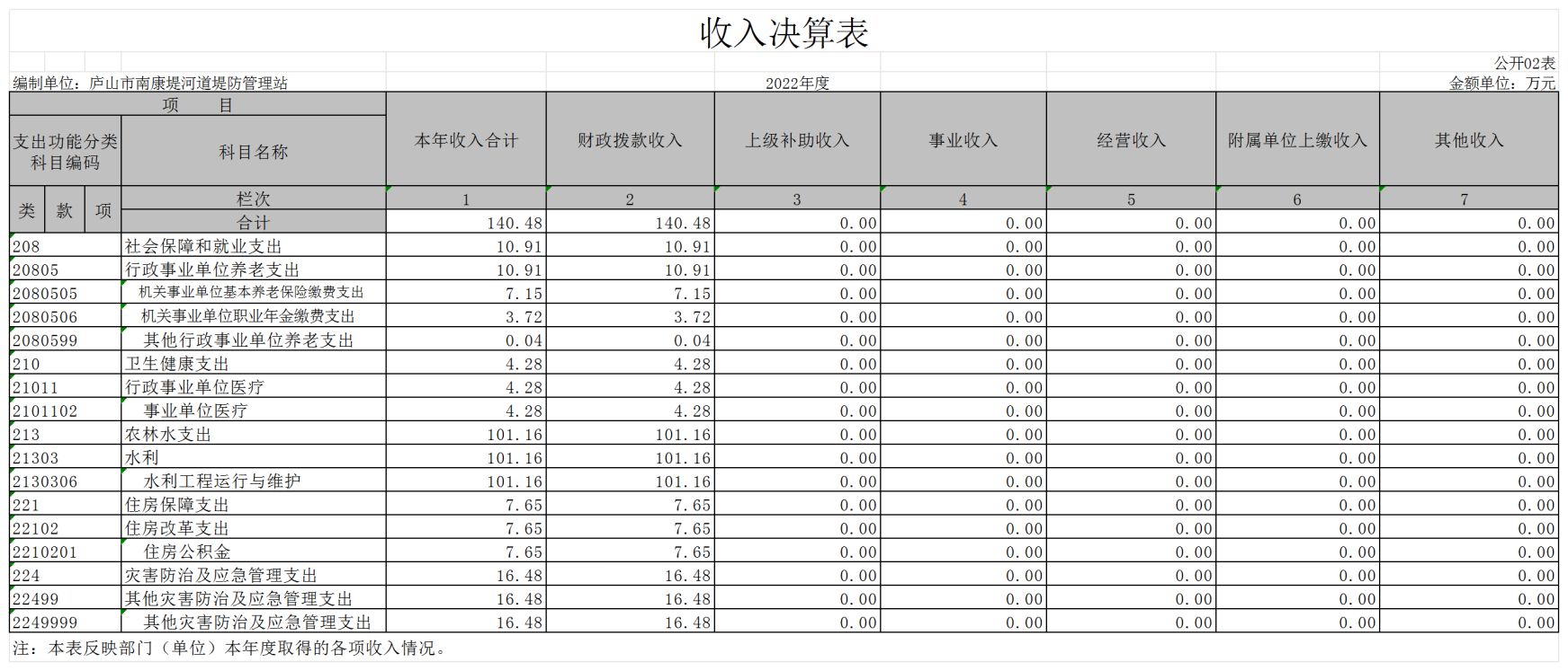 本年收入的具体构成为:财政拨款收入 140.48万元,占100 %;事业收入 0万元,占 0 %;经营收入 0万元,占0%;其他收入 0万元,占0%。