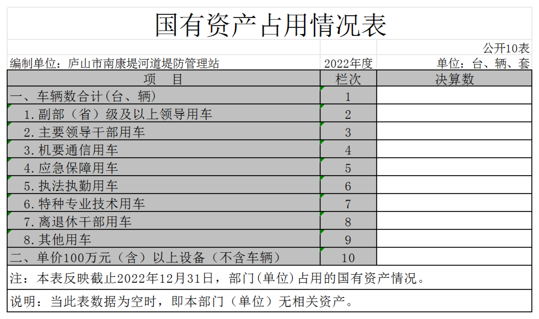 截止2022年12月31日,本单位国有资产占用情况见公开10表《国有资产占用情况表》。其中车辆中的其他用车为0。