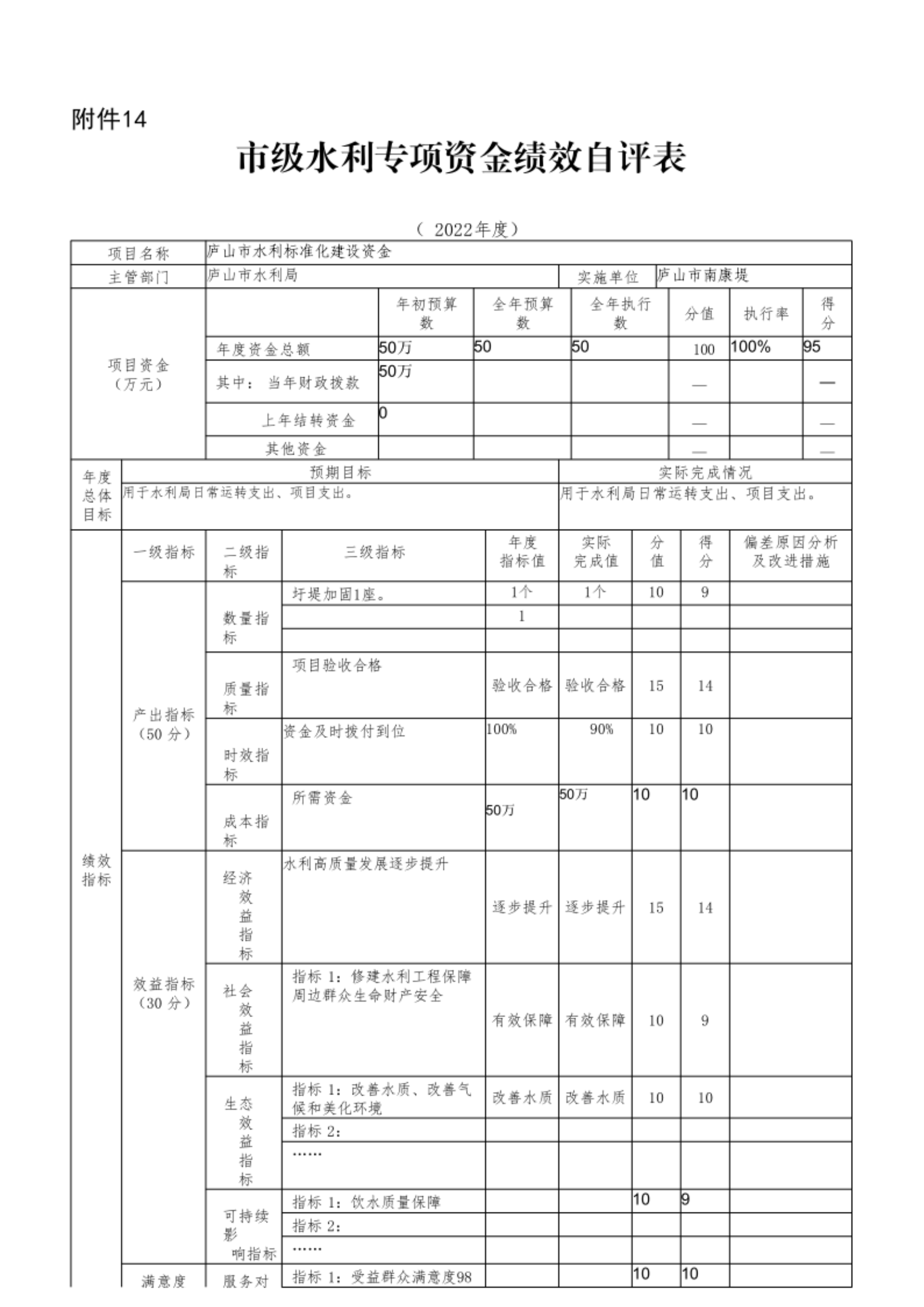 根据预算绩效管理要求,我单位组织对纳入2022年度部门预算范围的二级项目0个全面开展绩效自评,共涉及资金0万元,占项目支出总额的0 %。