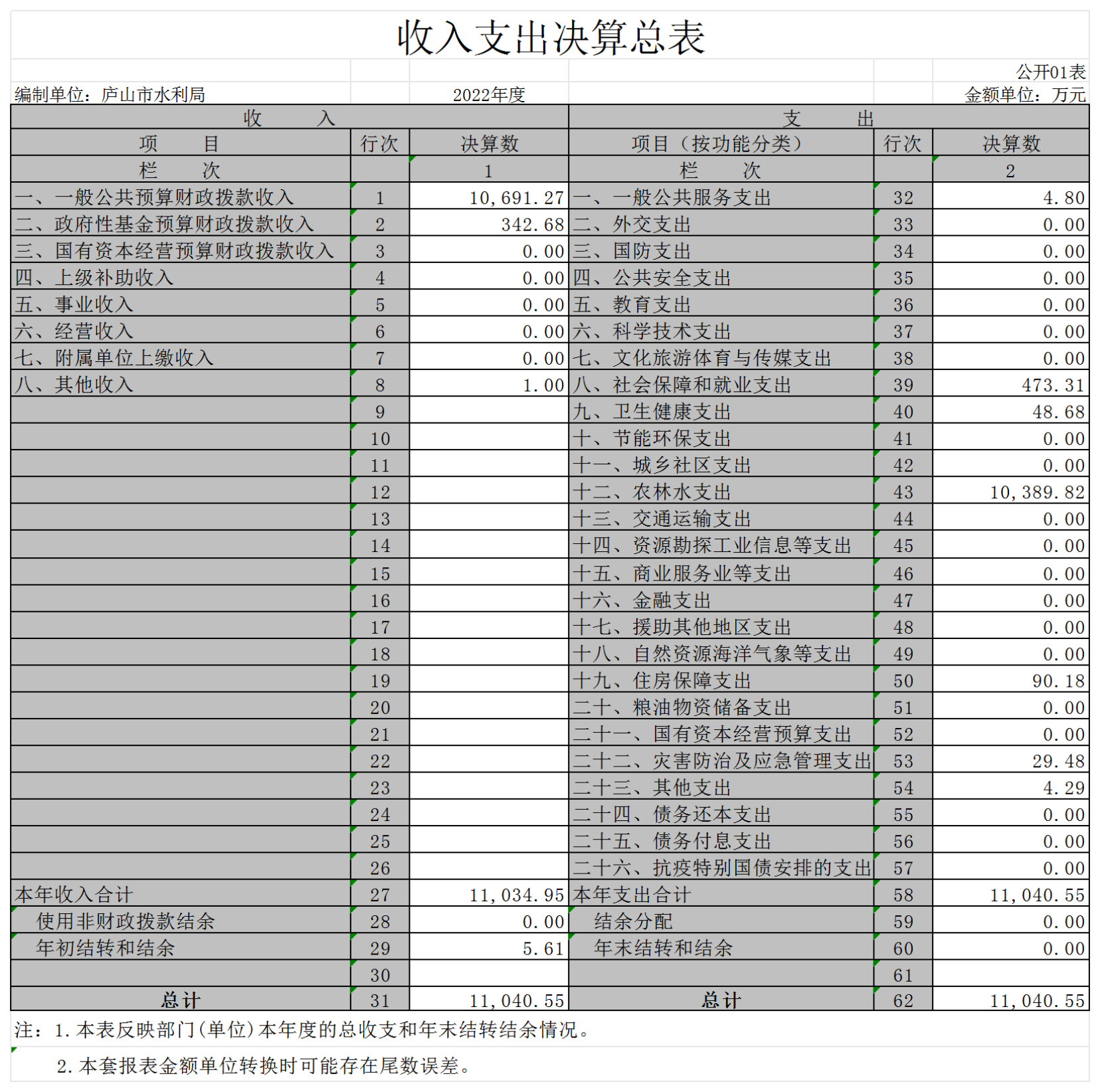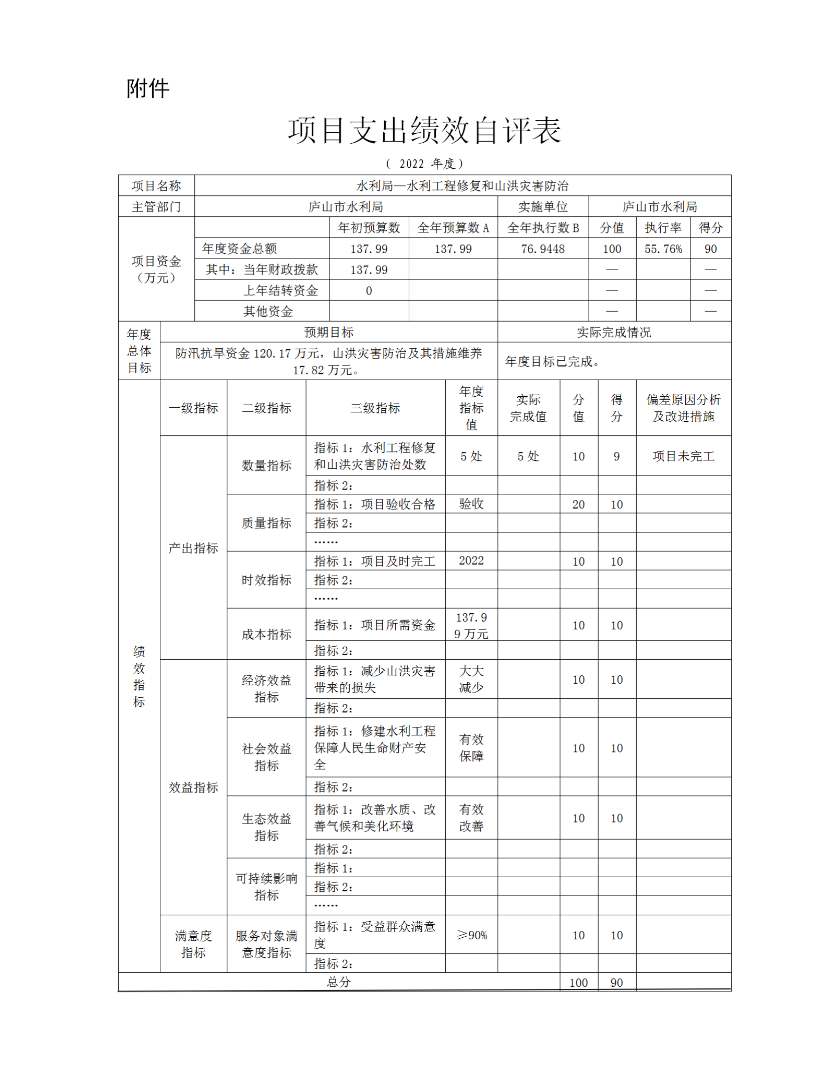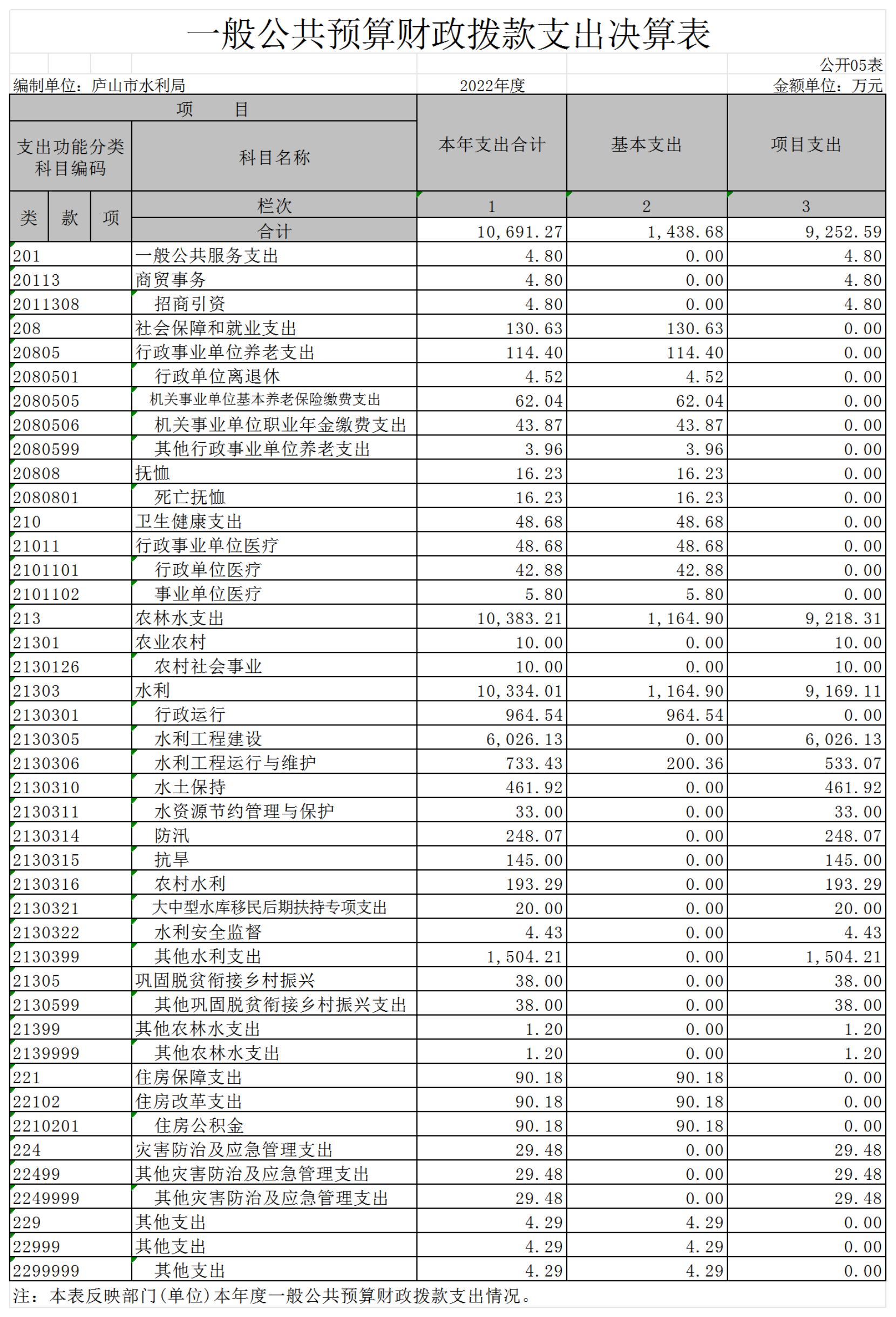 庐山市水利局2022年度部门决算