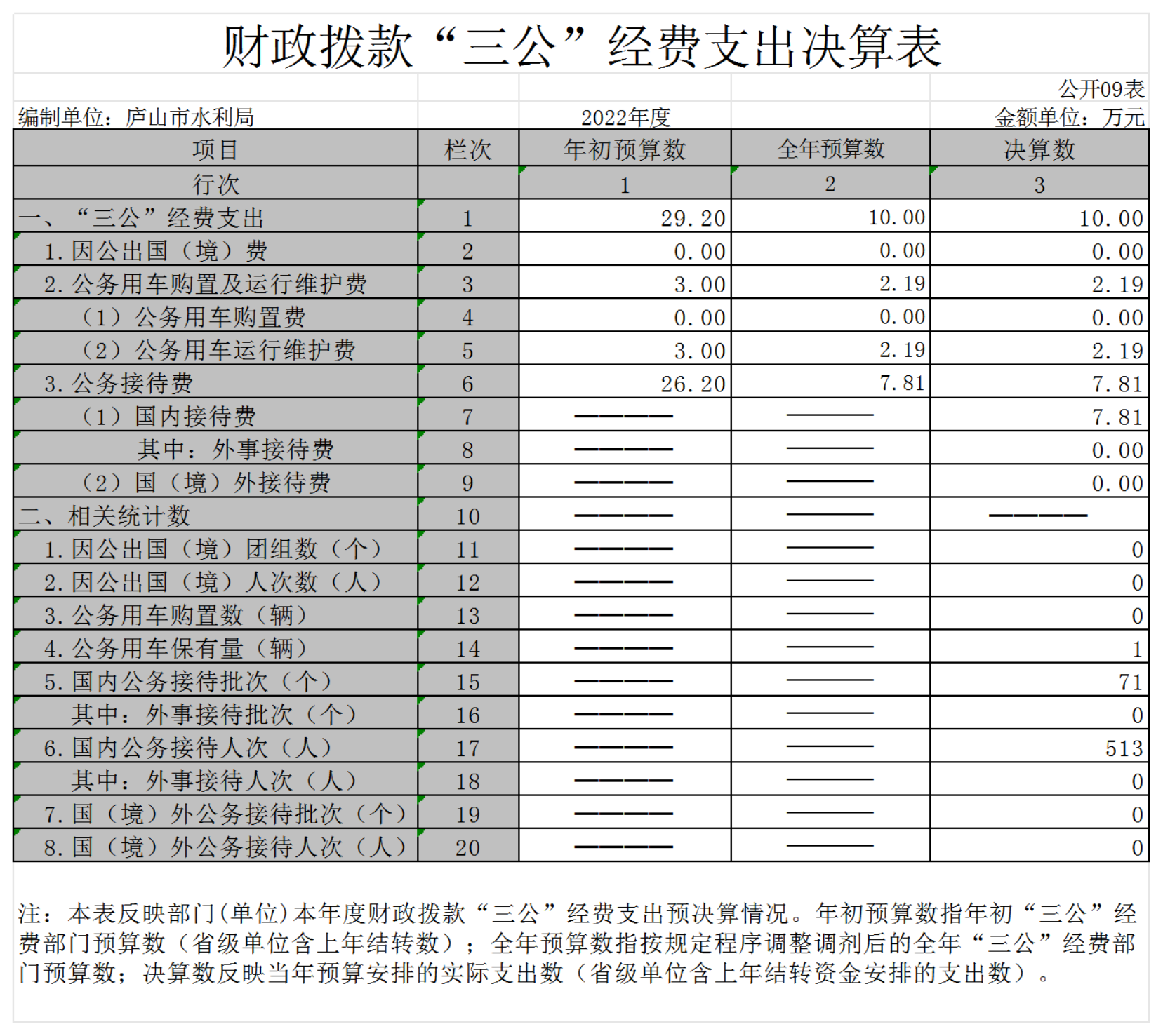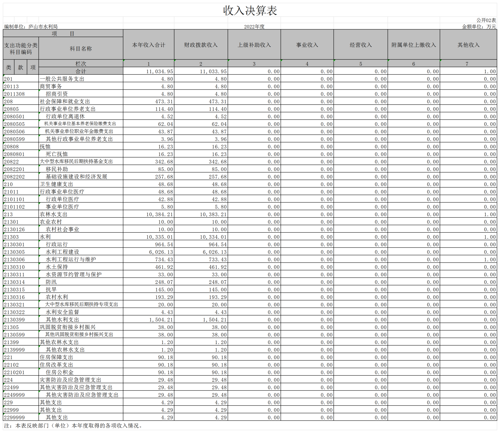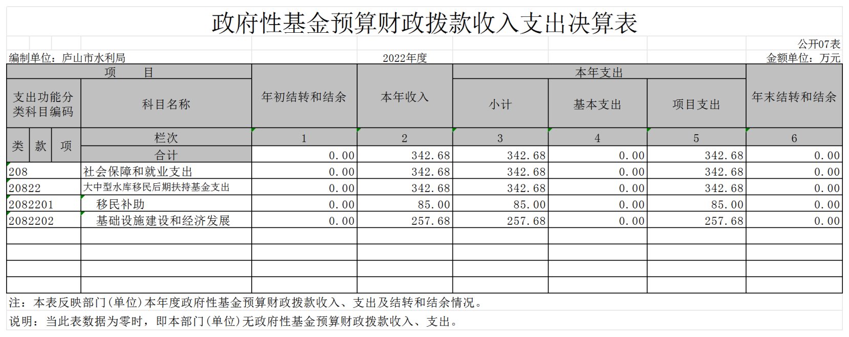 2022年庐山市水利局部门决算公开说明