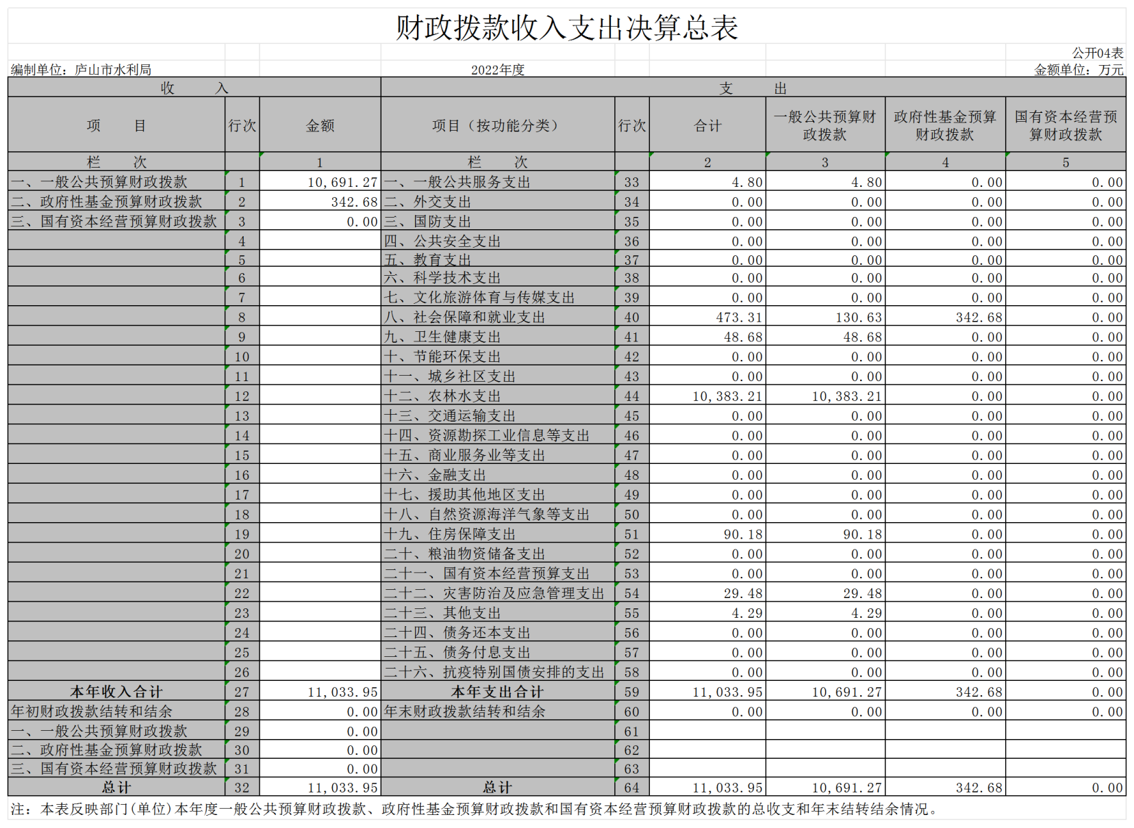 四、财政拨款收入支出决算总表
