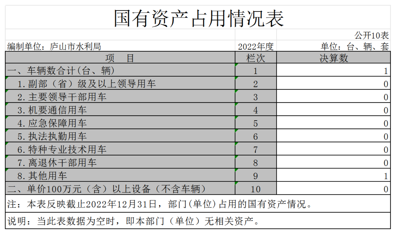 截至2022年12月31日,本部门(单位)国有资产占用情况见公开10表《国有资产占用情况表》。其中车辆中的其他用车主要是公务执法用车。