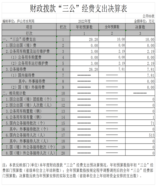 水利局部门2022年财政拨款“三公”经费支出决算表