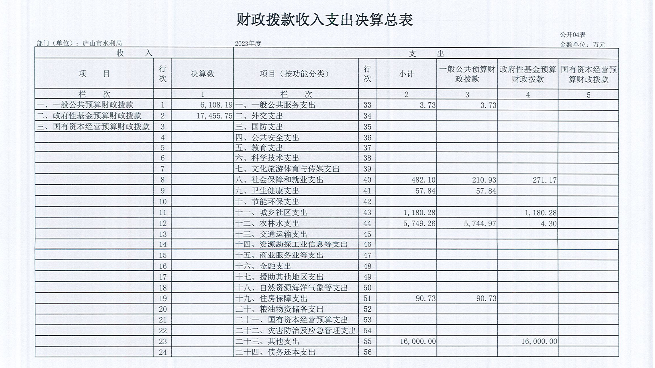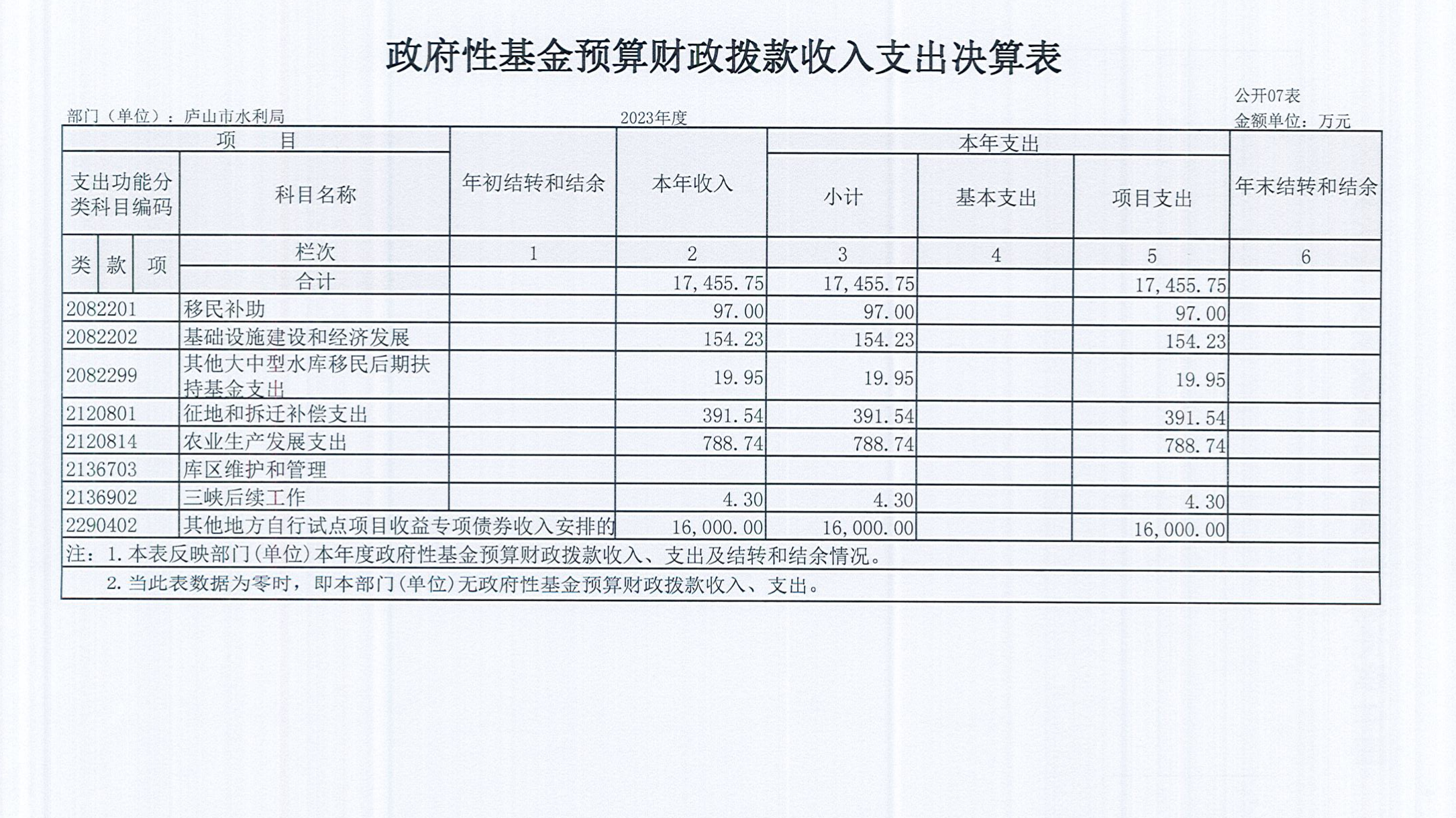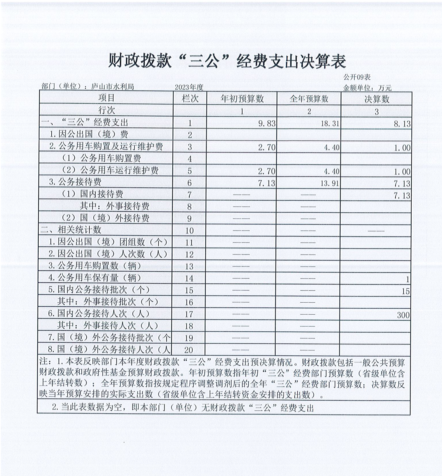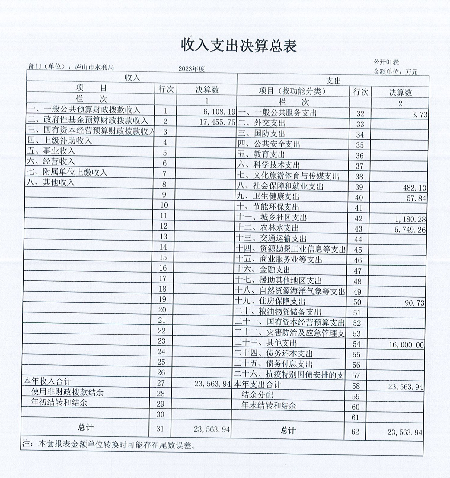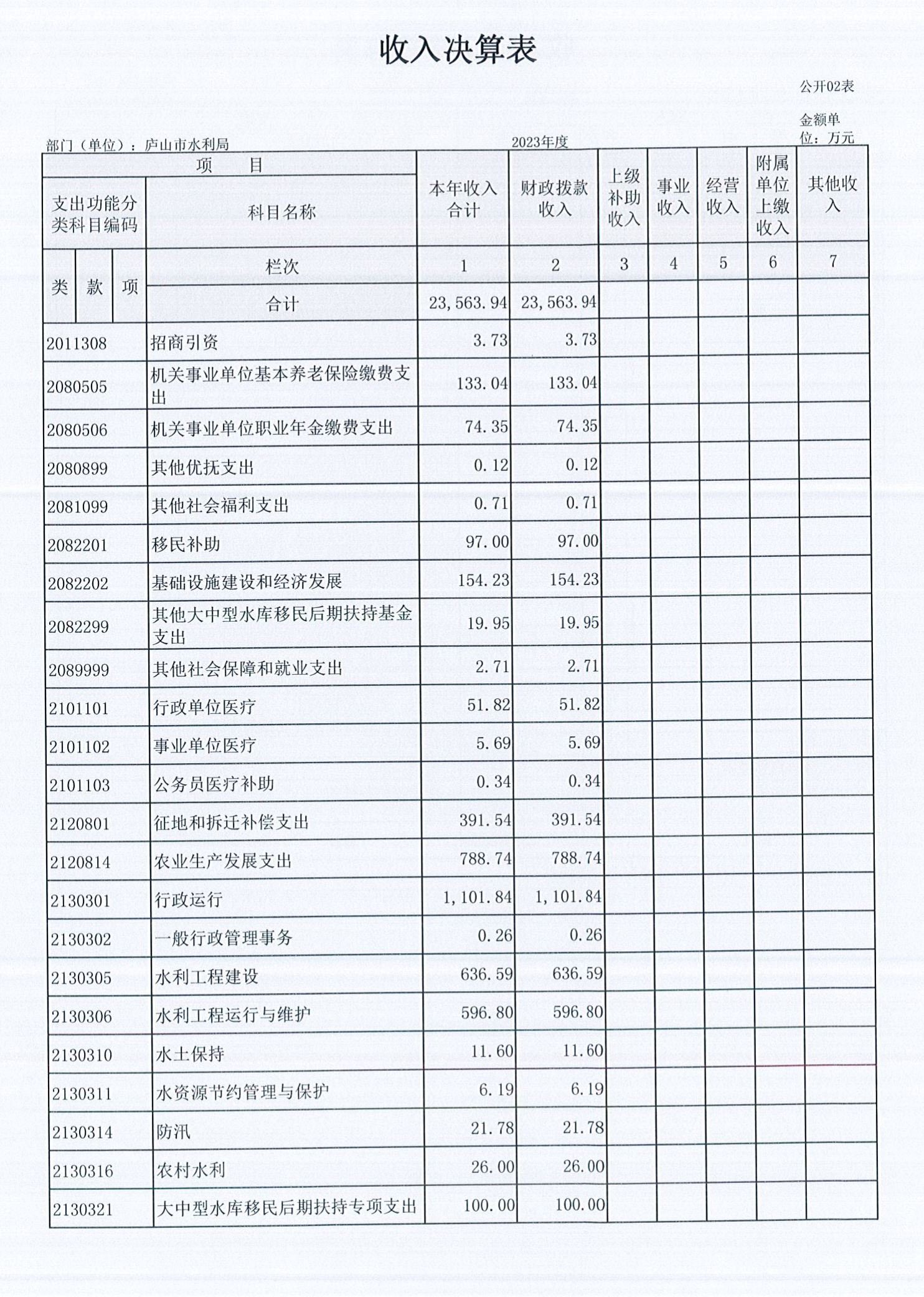 庐山市水利局2023年度部门决算