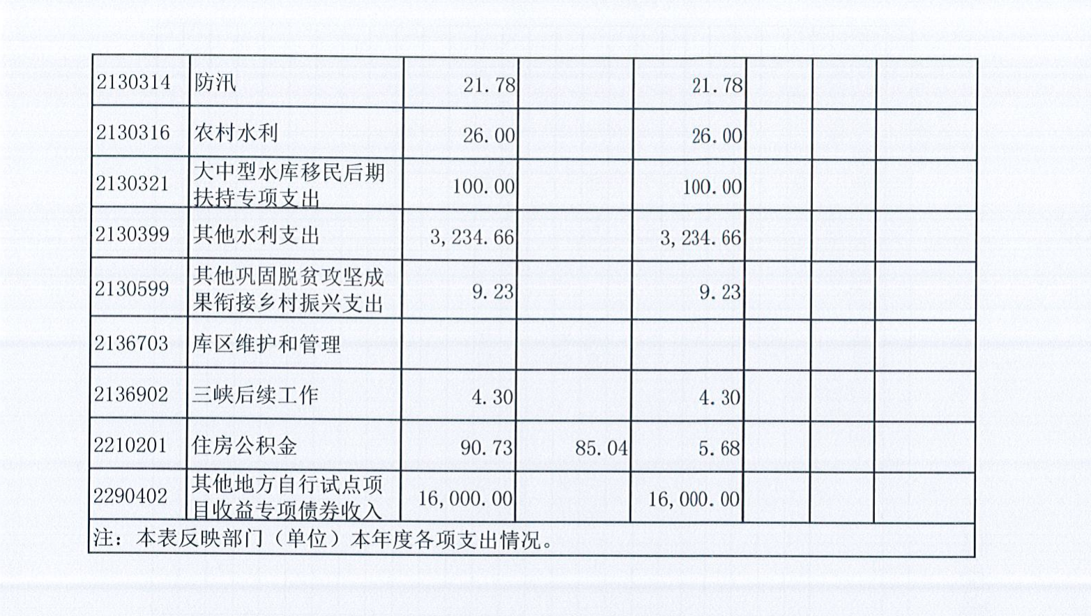 (六)其他支出年初预算数为0万元,决算数为16000万元,完成年初预算的100%,主要原因是:水利项目增加。