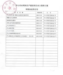 庐山市水利局生产建设项目水土保持方案审批决定的公告