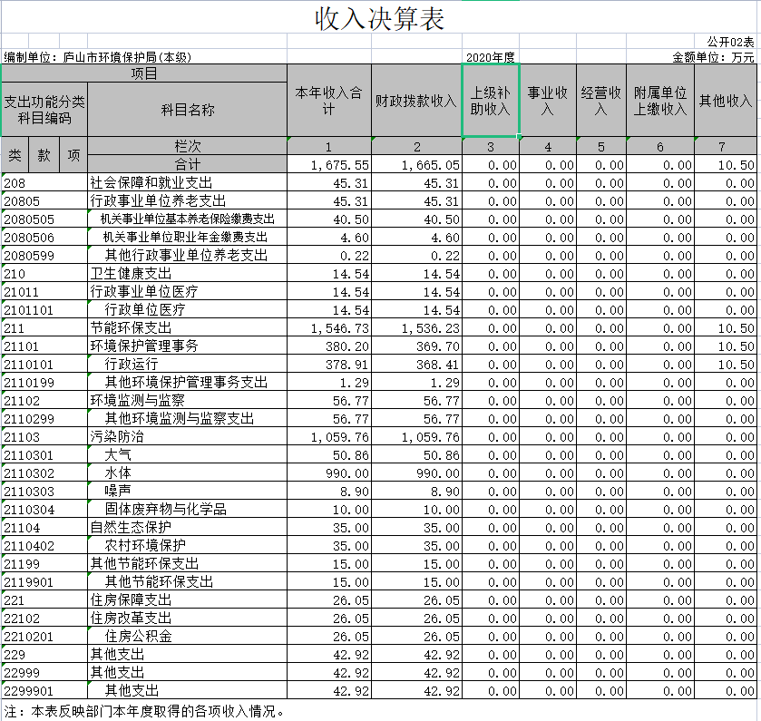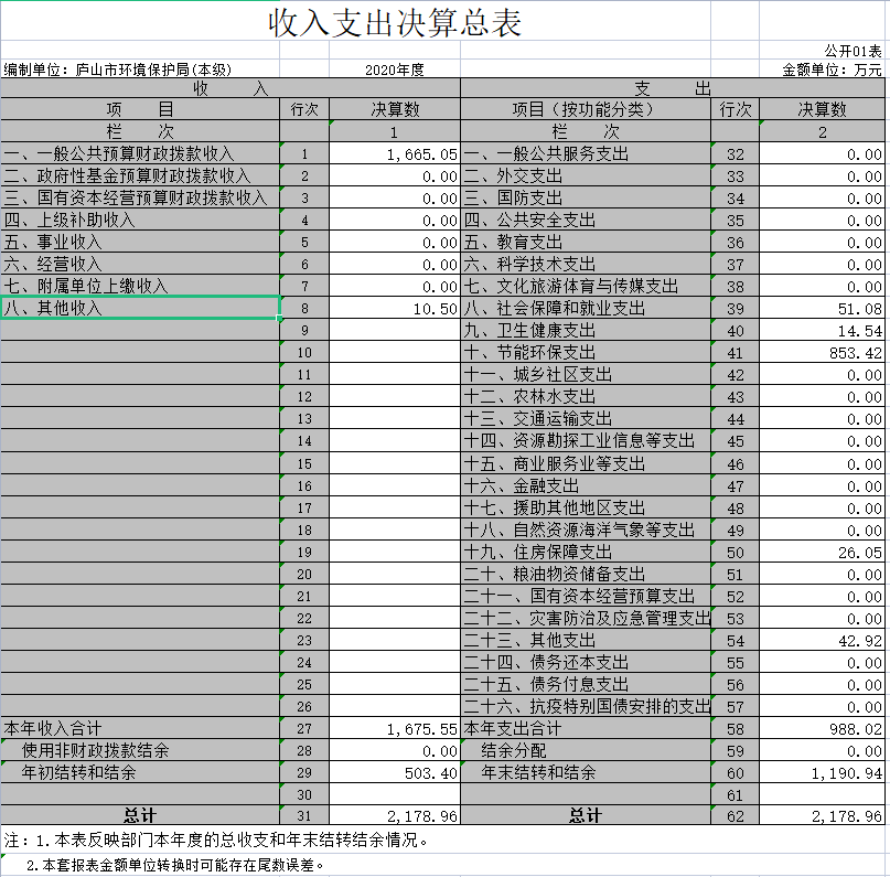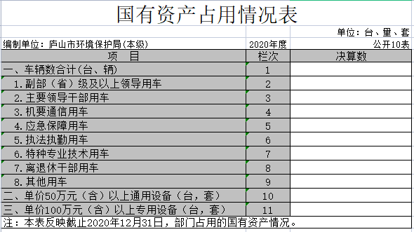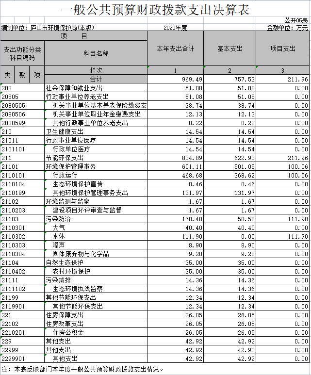 九江市庐山生态环境局2020年度部门决算公开