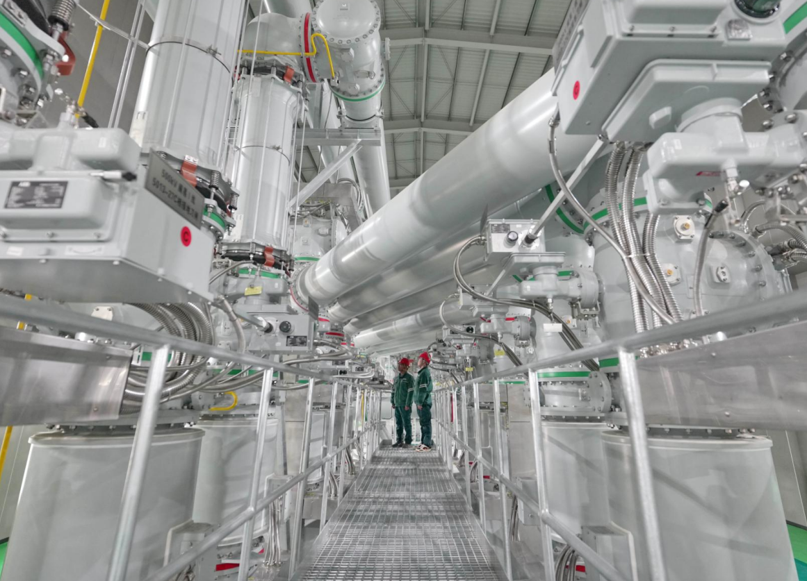 2025年12月7日,雄安新区新能源输送通道关键枢纽变电站——雄安500千伏超高压变电站正式投运。据介绍,该变电站是国家“十四五”规划重点项目,是将内蒙古和河北坝上地区风电、光伏发电等清洁能源引入雄安新区的关键站点。图为在雄安500千伏超高压变电站投运前,工人进行巡检。新华社记者 杨世尧/摄