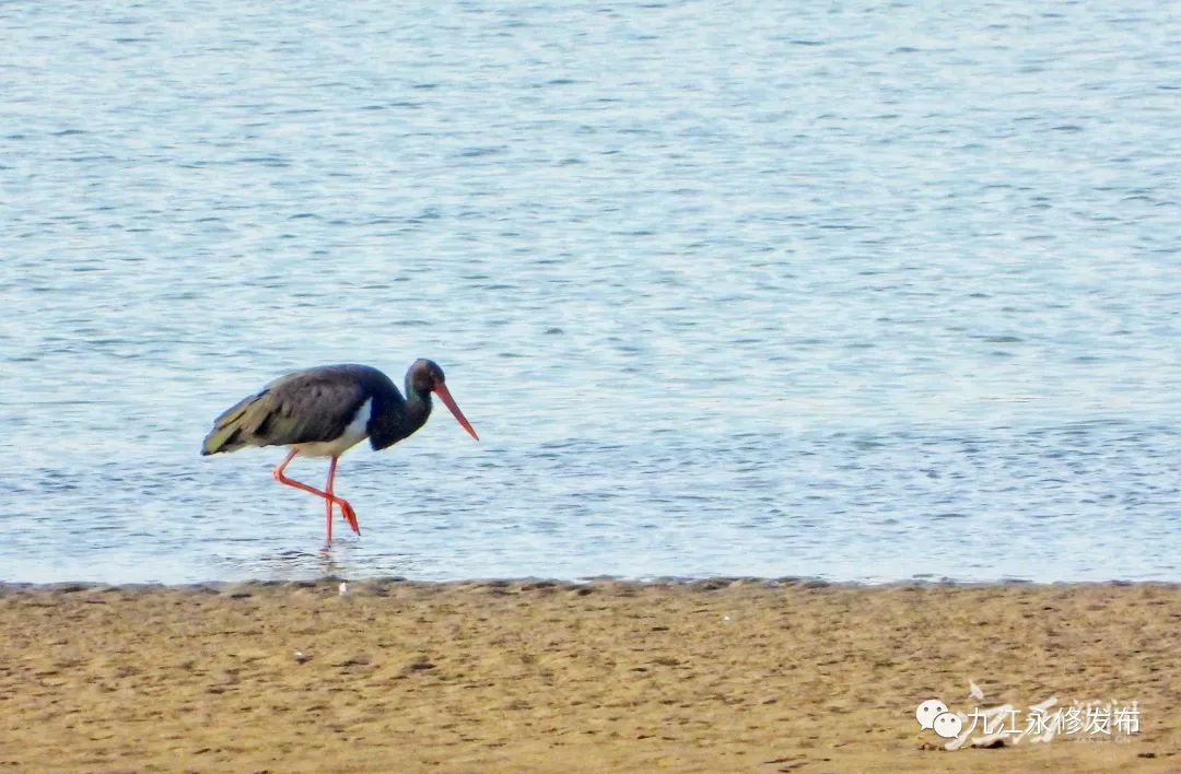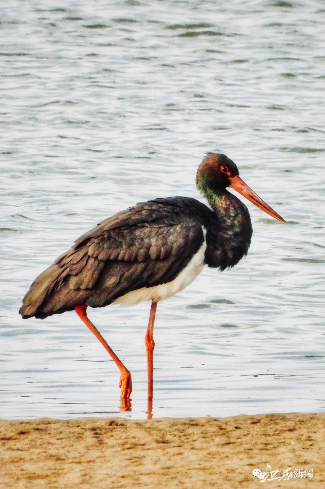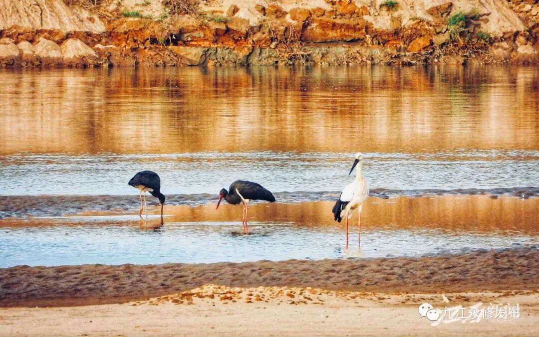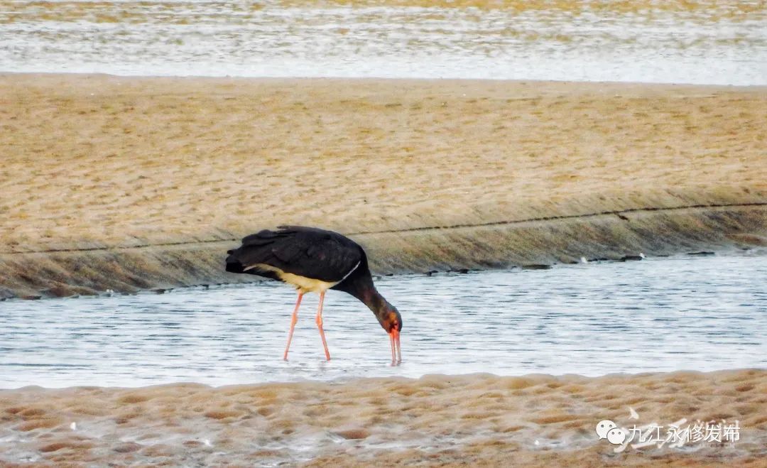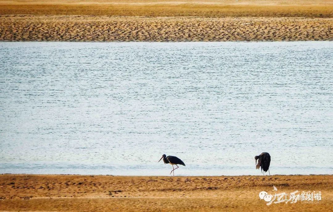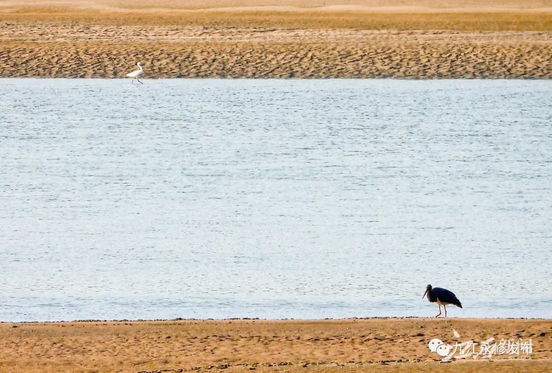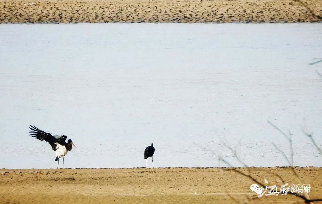 第三届鄱阳湖国际观鸟季丨黑鹳、白鹳鄱阳湖畔罕见同框觅食