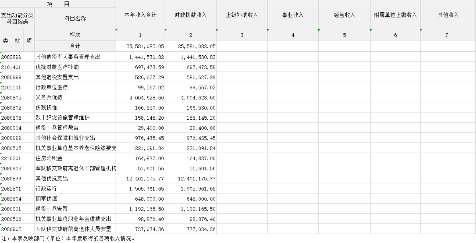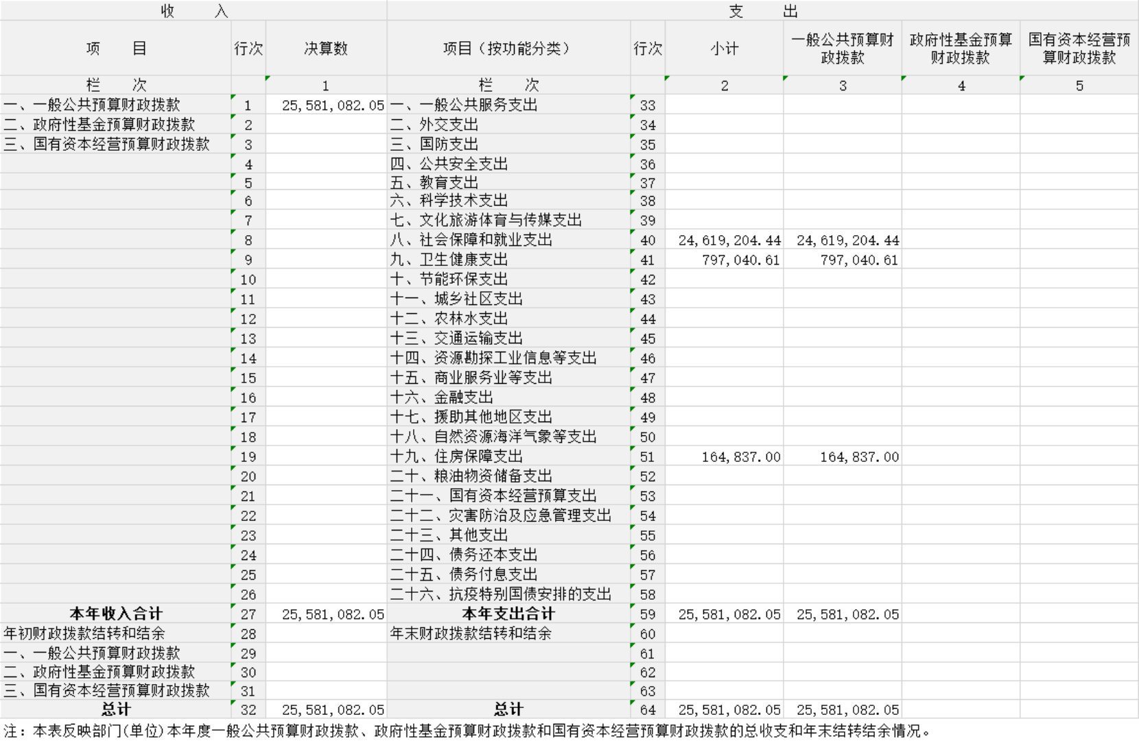收入决算表