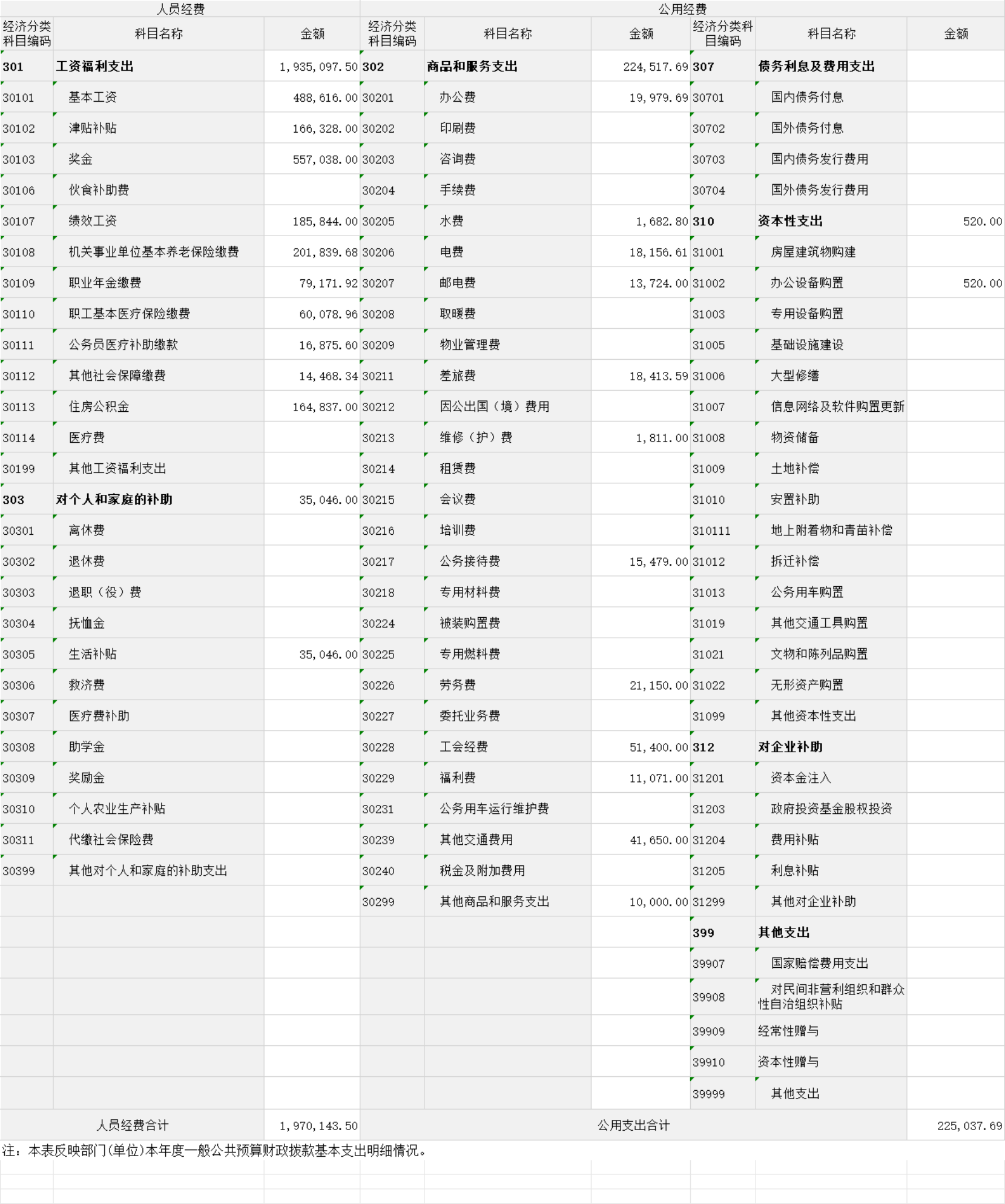 (一)基本支出:指为保障机构正常运转、完成日常工作任务而发生的人员经费和公用经费。其中:人员经费指政府收支分类经济科目中的“工资福利支出”和“对个人和家庭的补助”;公用经费指政府收支分类经济科目中除“工资福利支出”和“对个人和家庭的补助”外的其他支出。