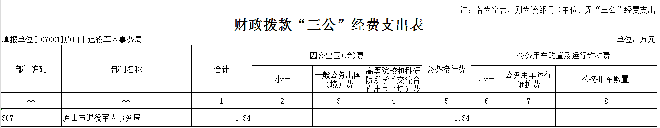 庐山市退役军人事务局2025年财政拨款“三公”经费支出表