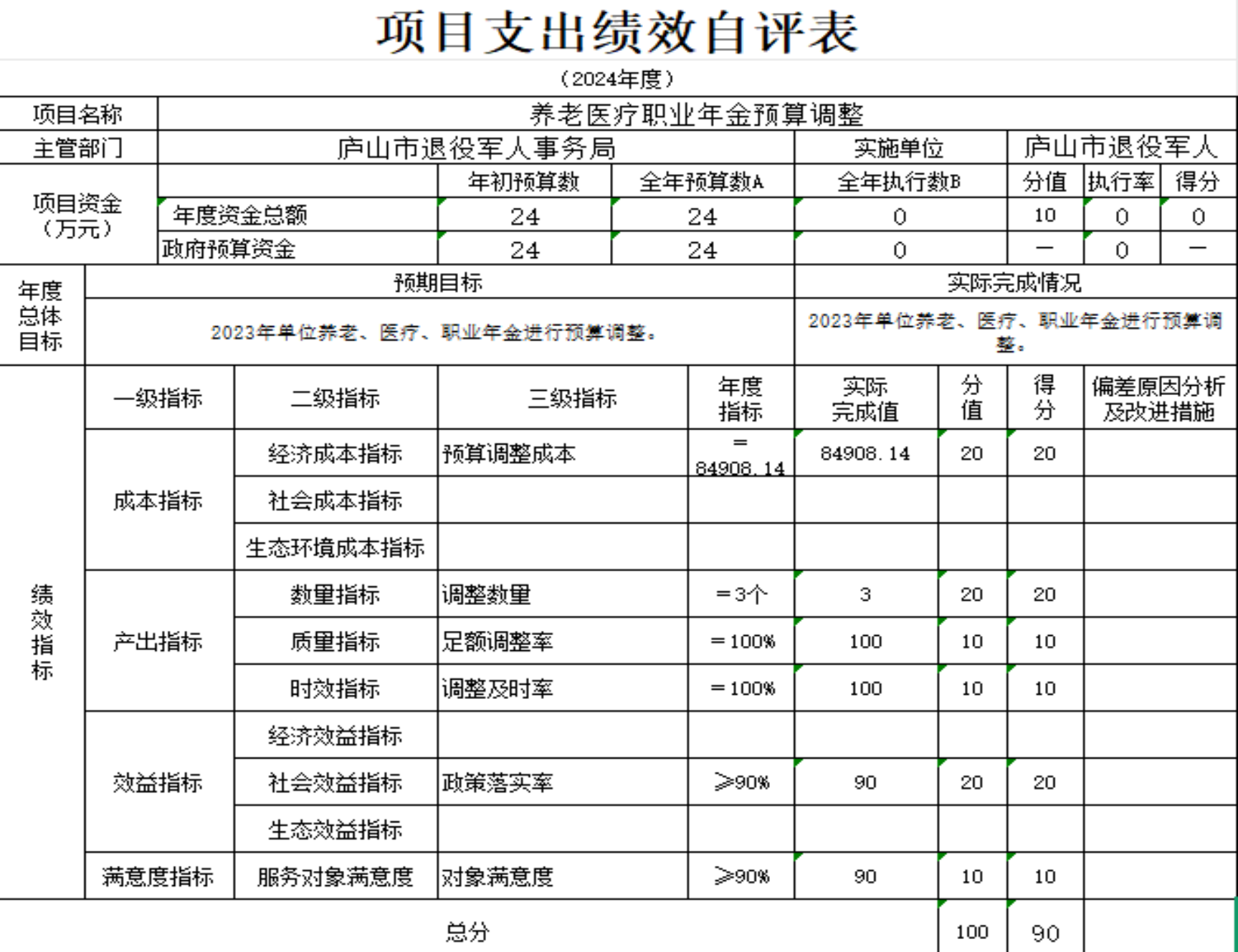 本部门养老医疗职业年金项目支出绩效自评表”如下: