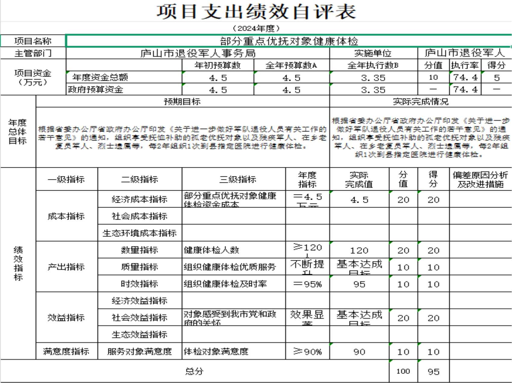 本部门部分重点优抚对象健康体检项目支出绩效自评表”如下: