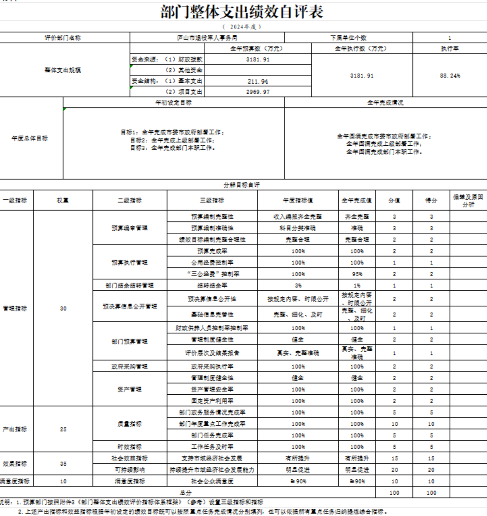 本部门2024年军休经费项目支出绩效自评表”如下: