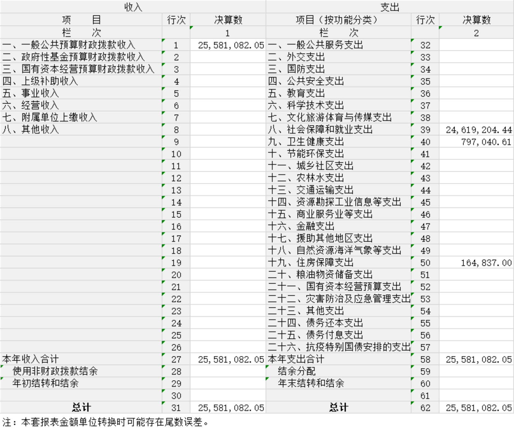收入决算表