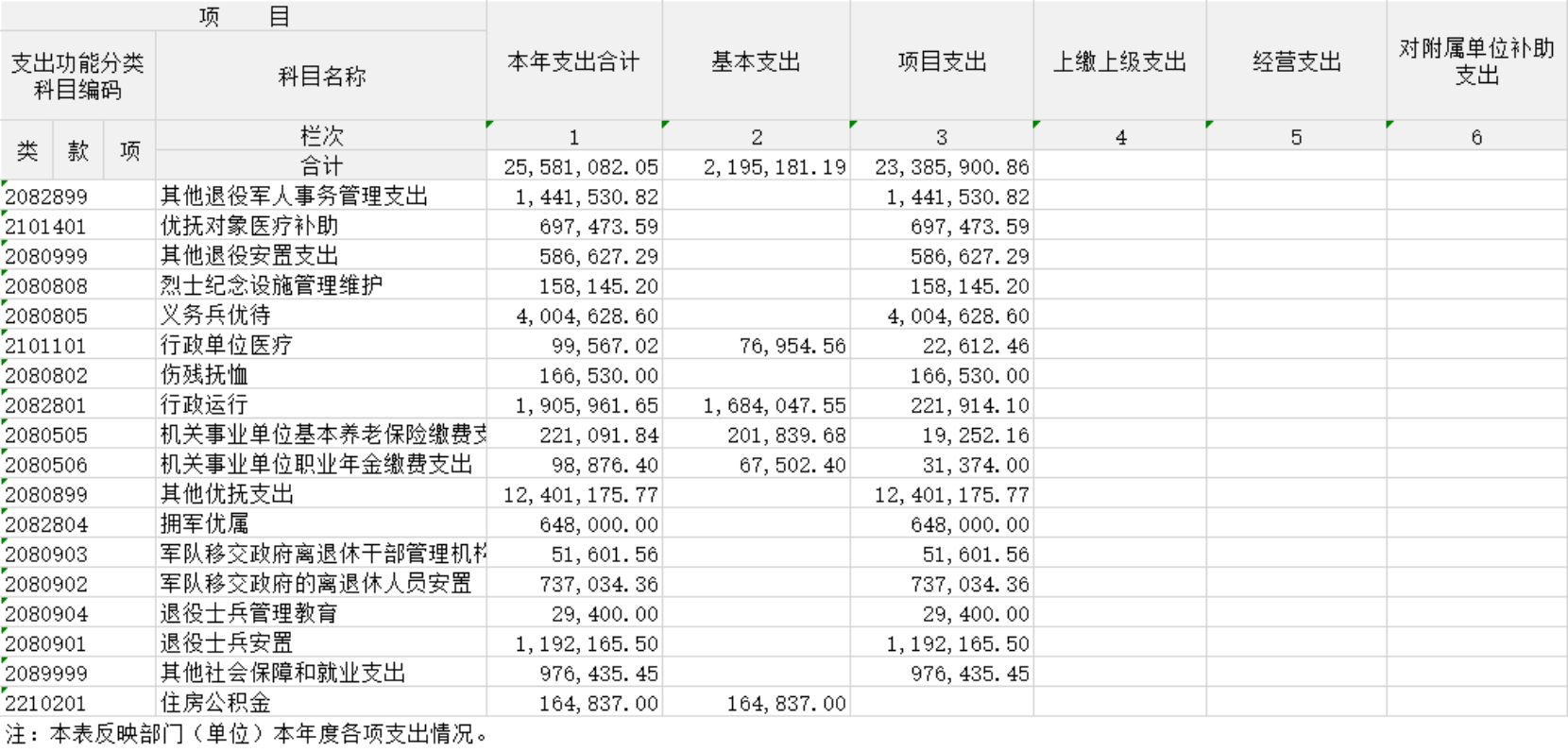 支出决算表