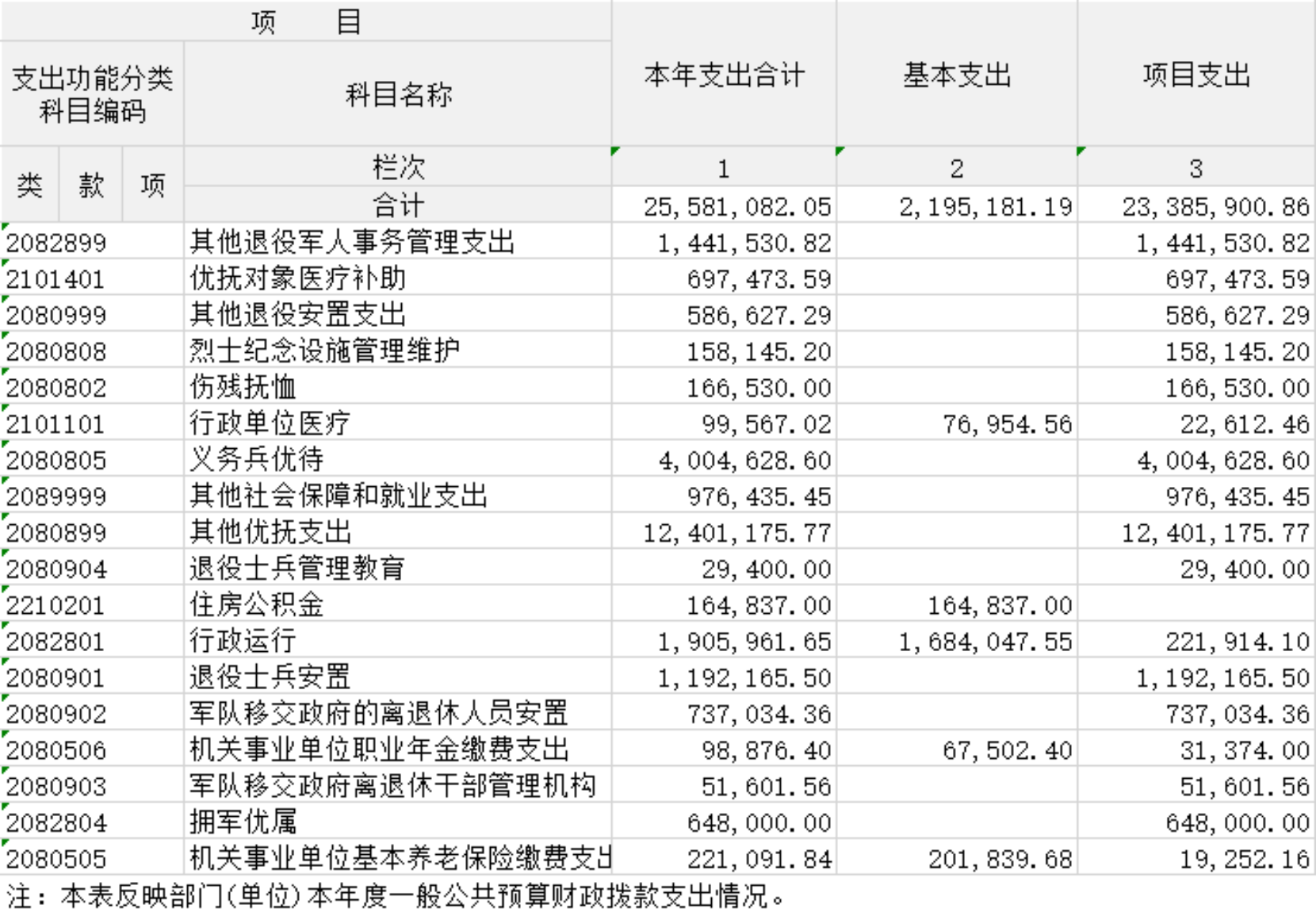 一般公共预算财政拨款支出决算表