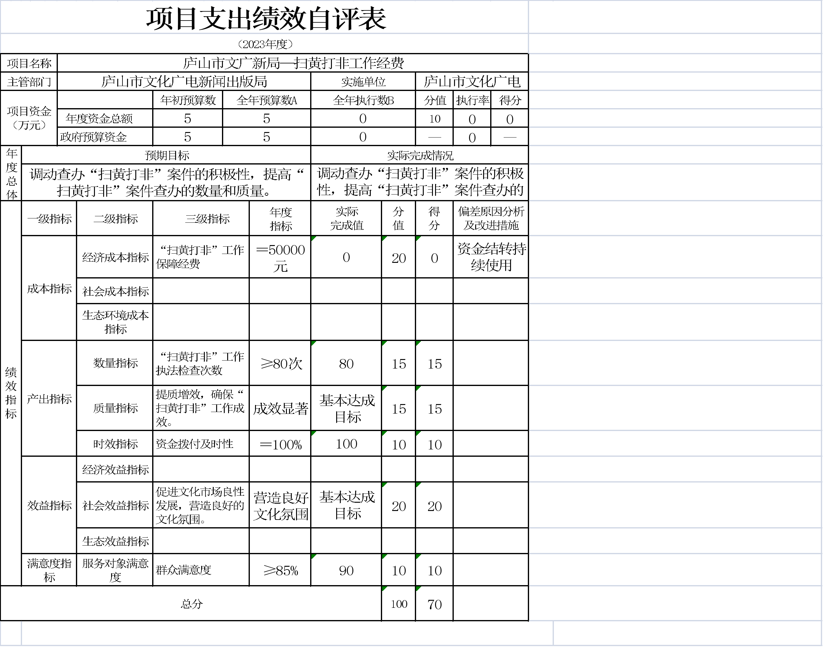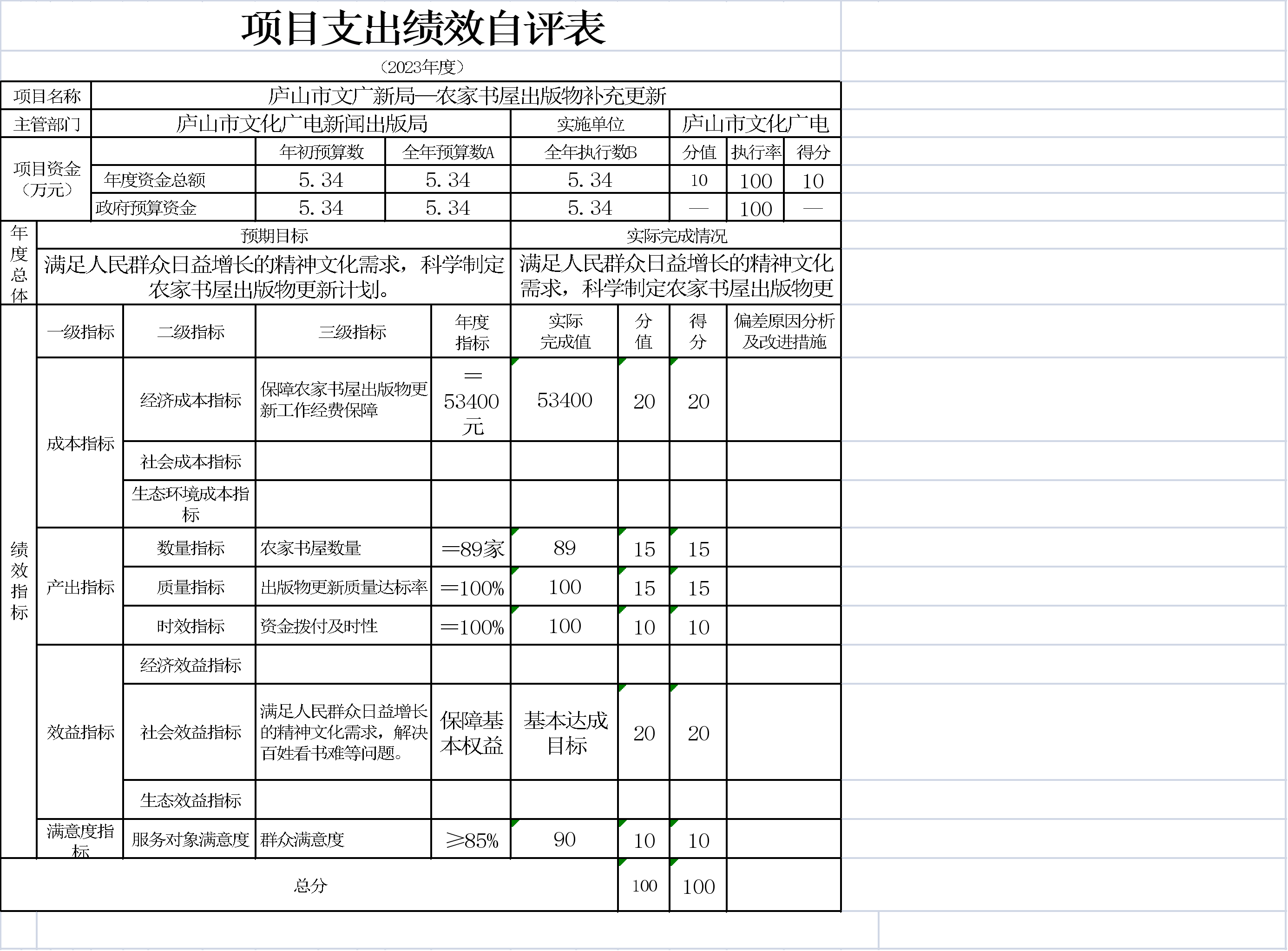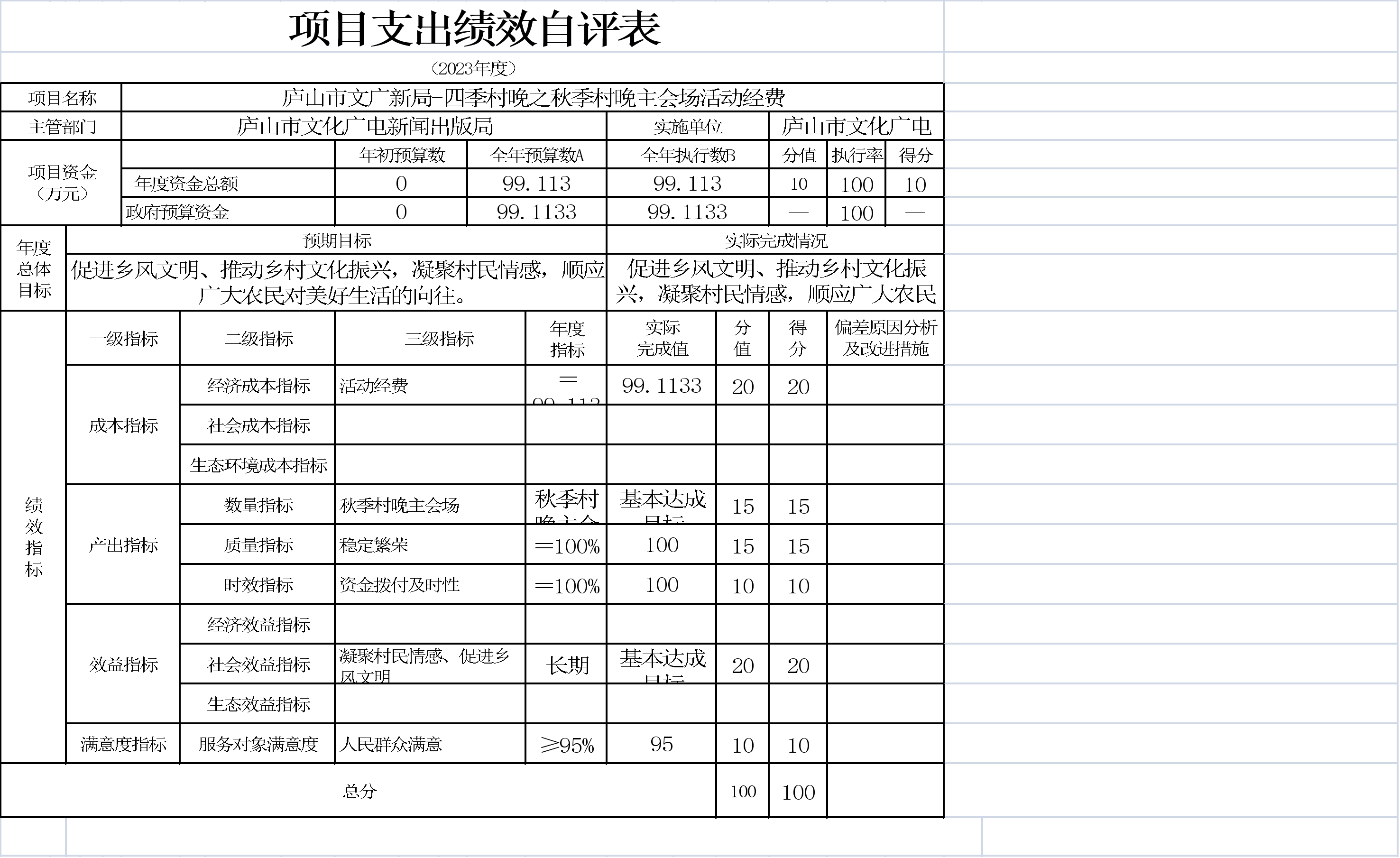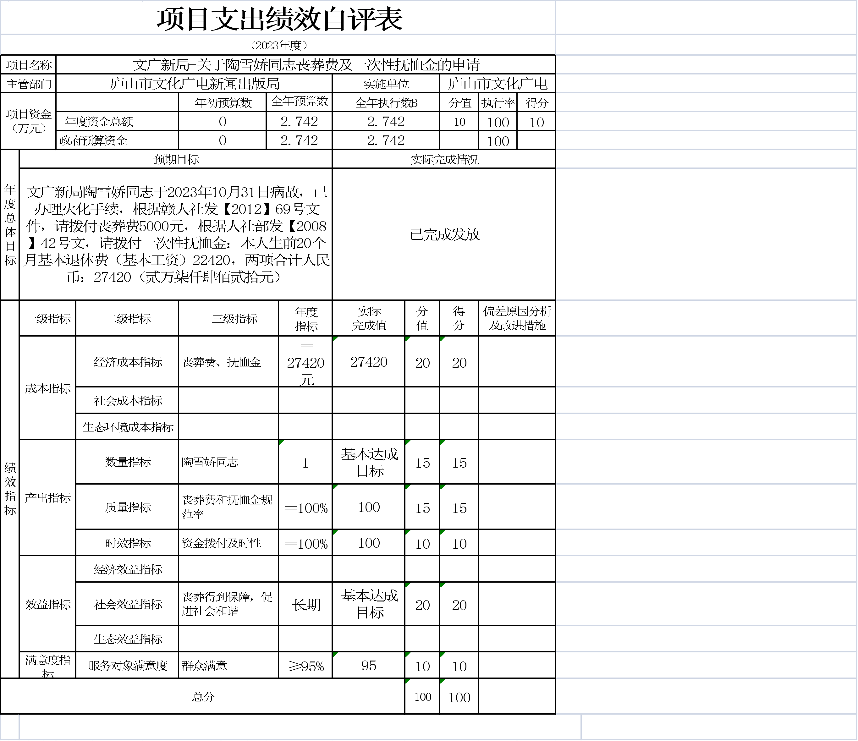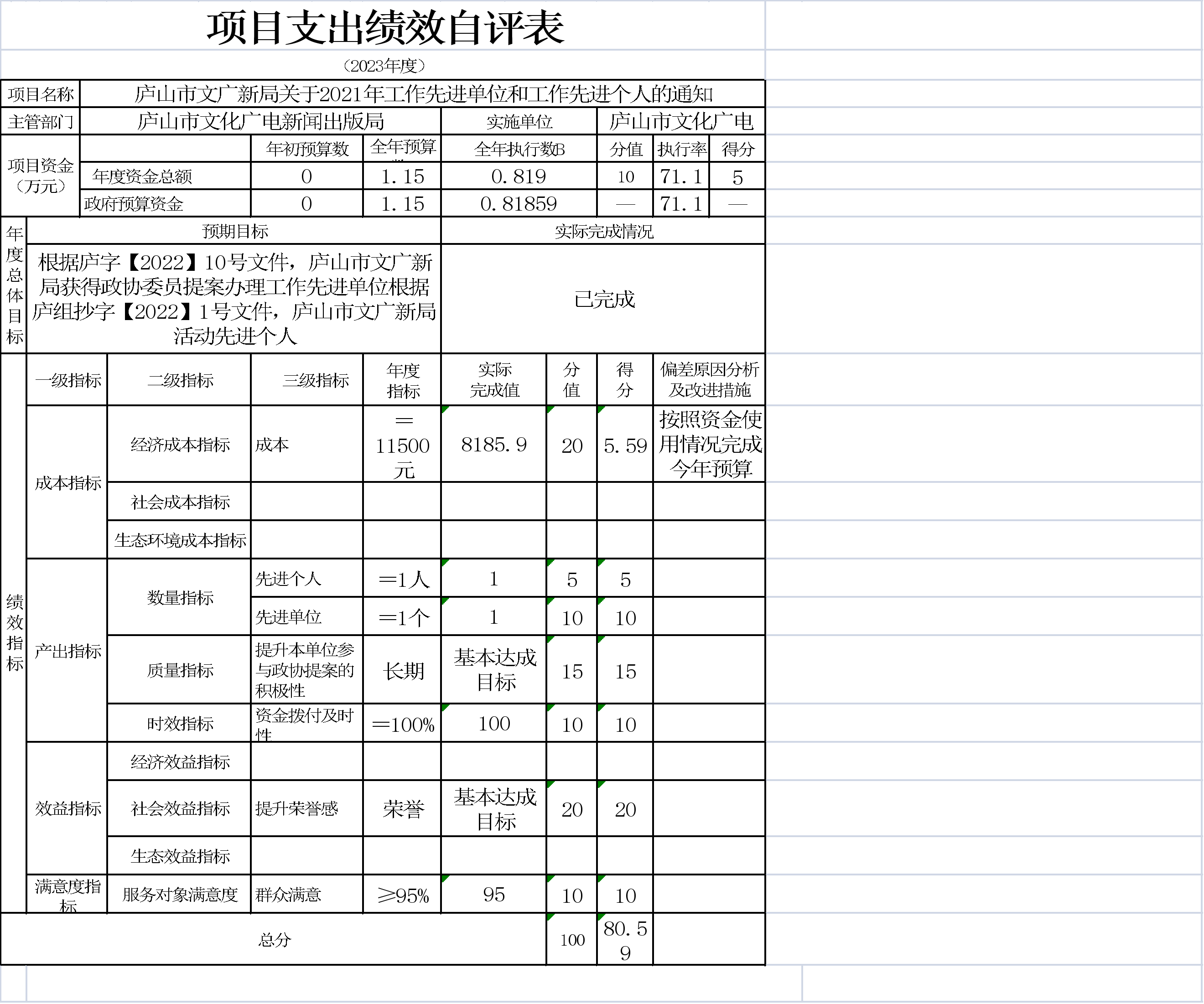 本单位项目支出绩效自评表如下: