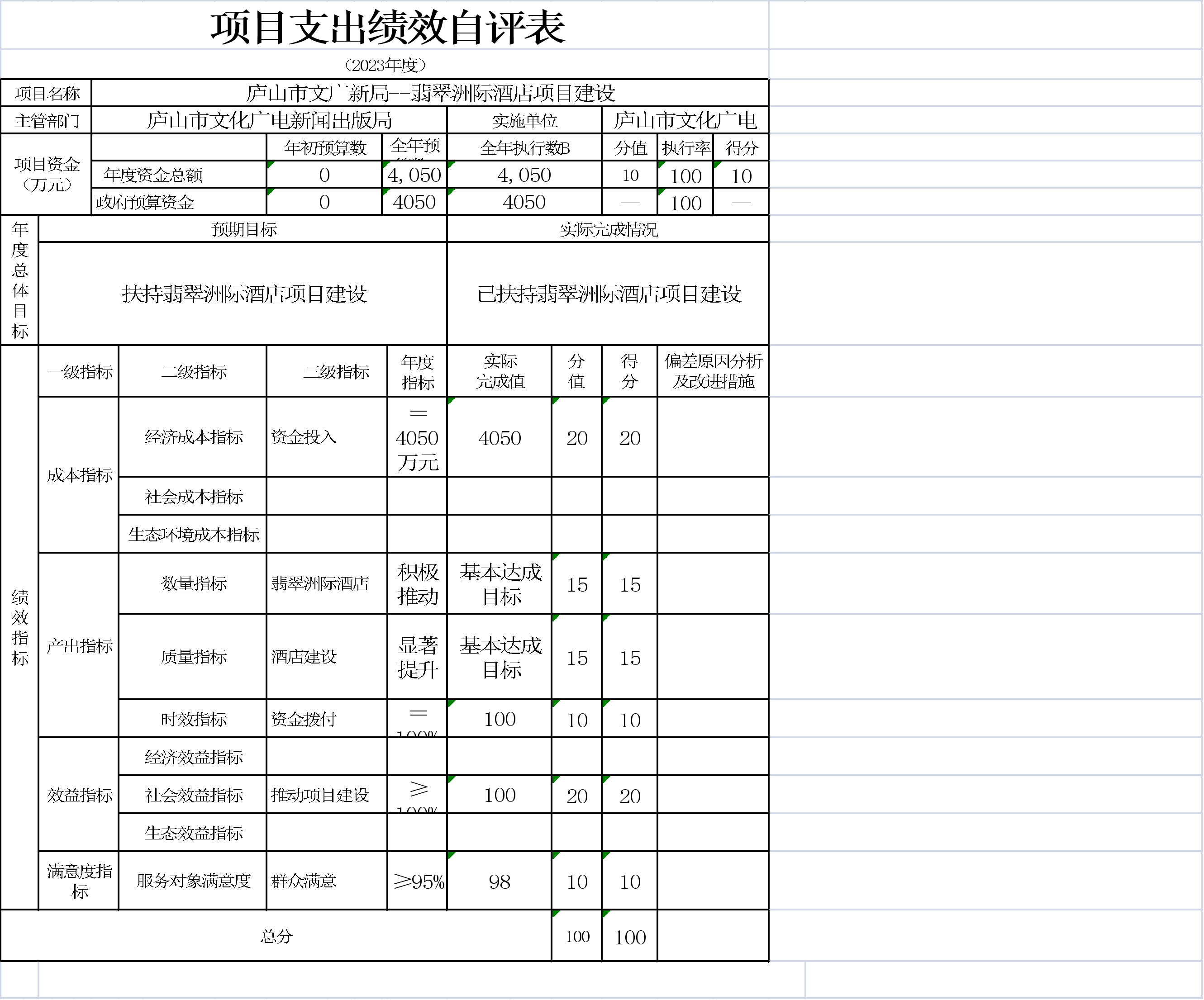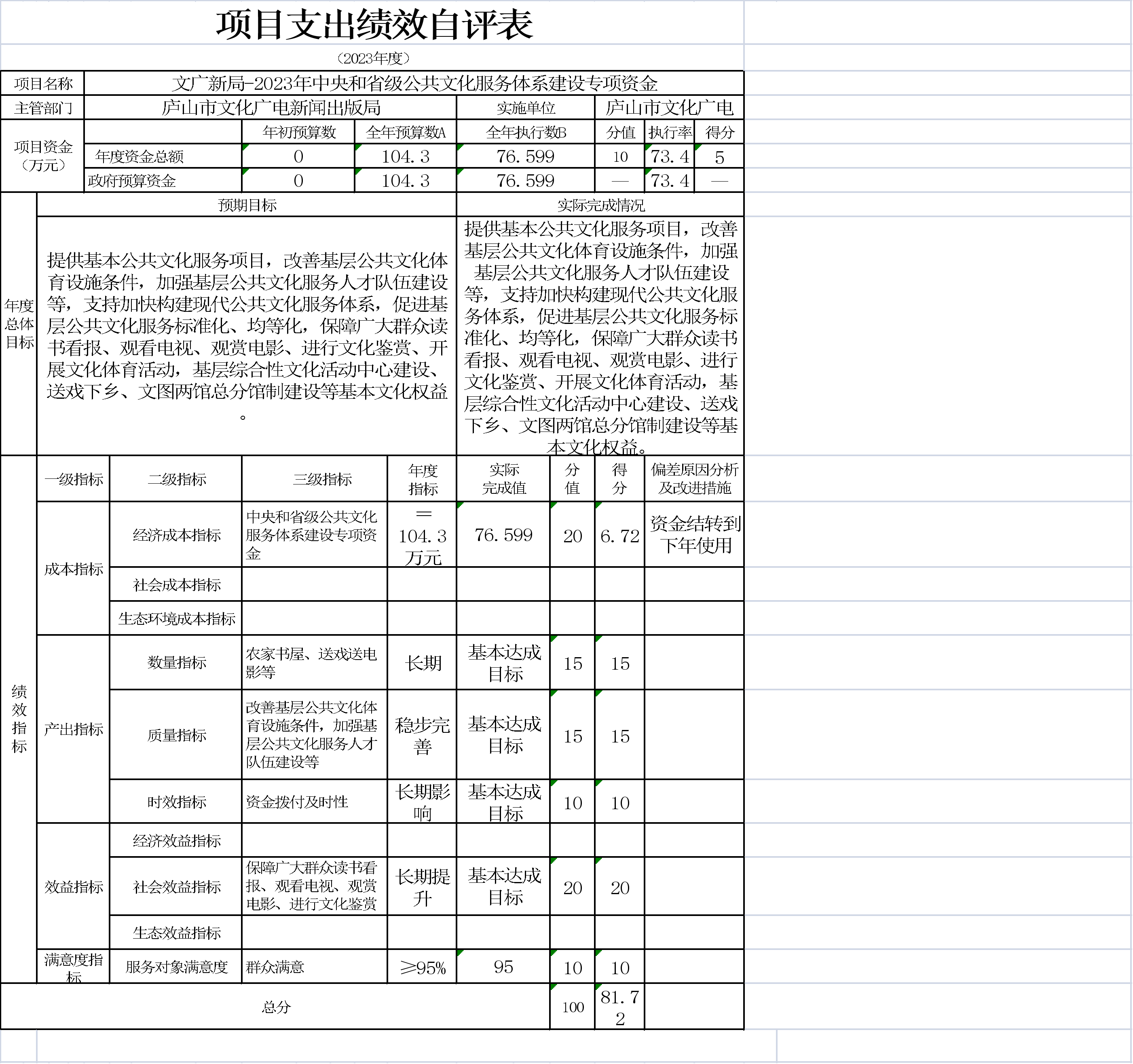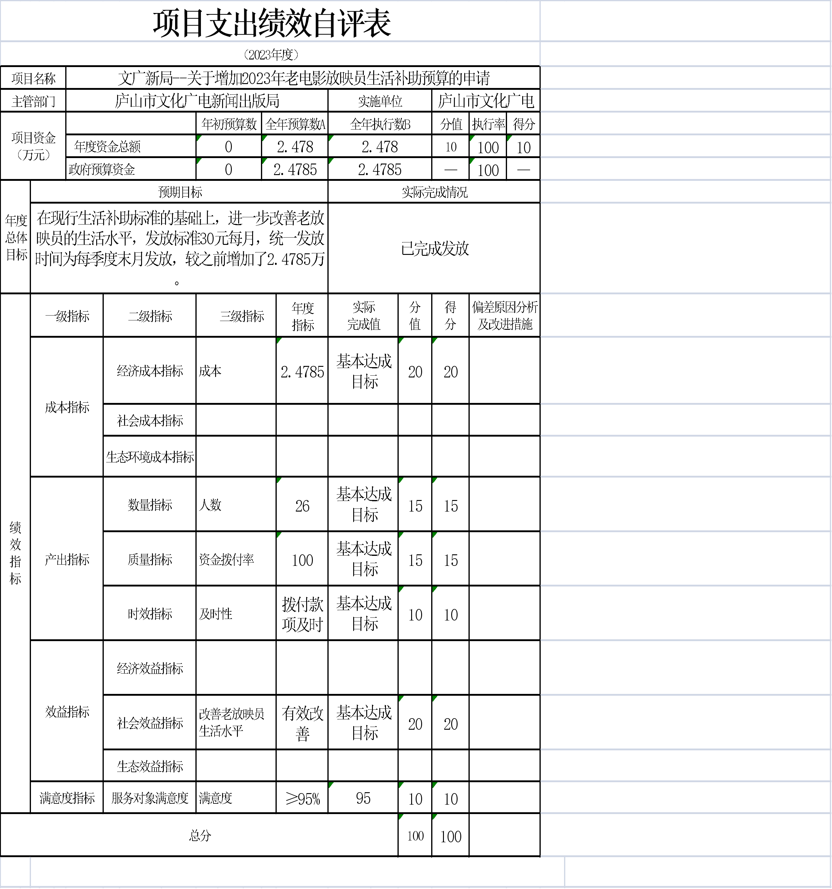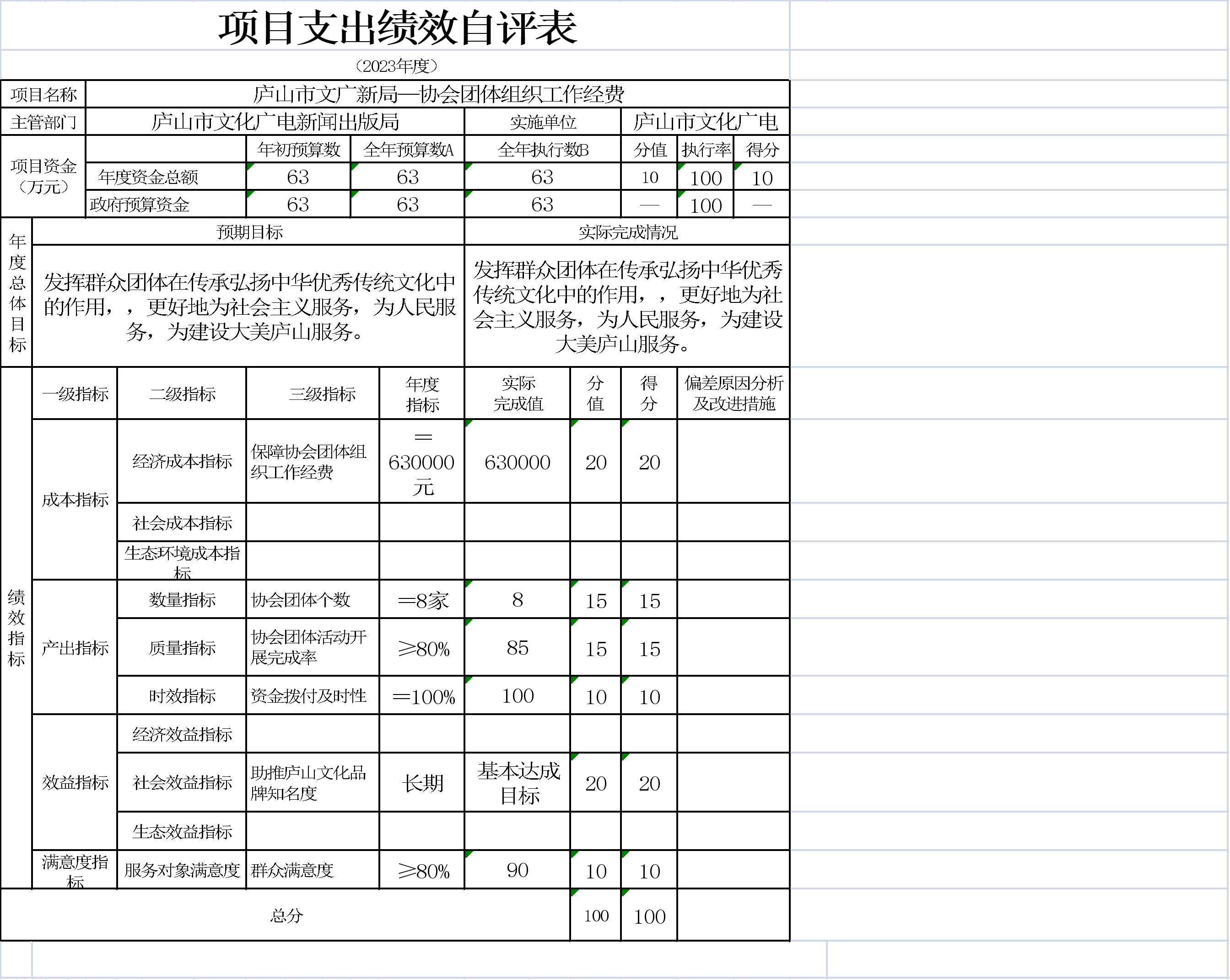 本单位项目支出绩效自评表如下: