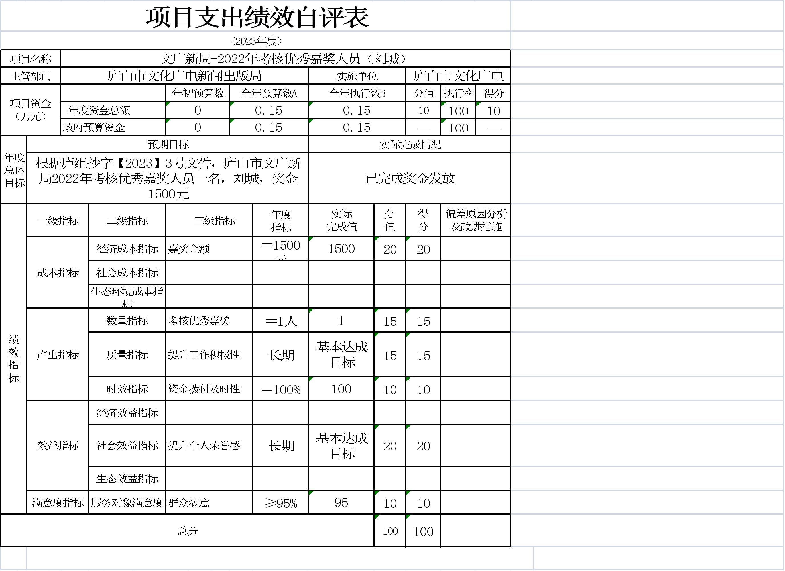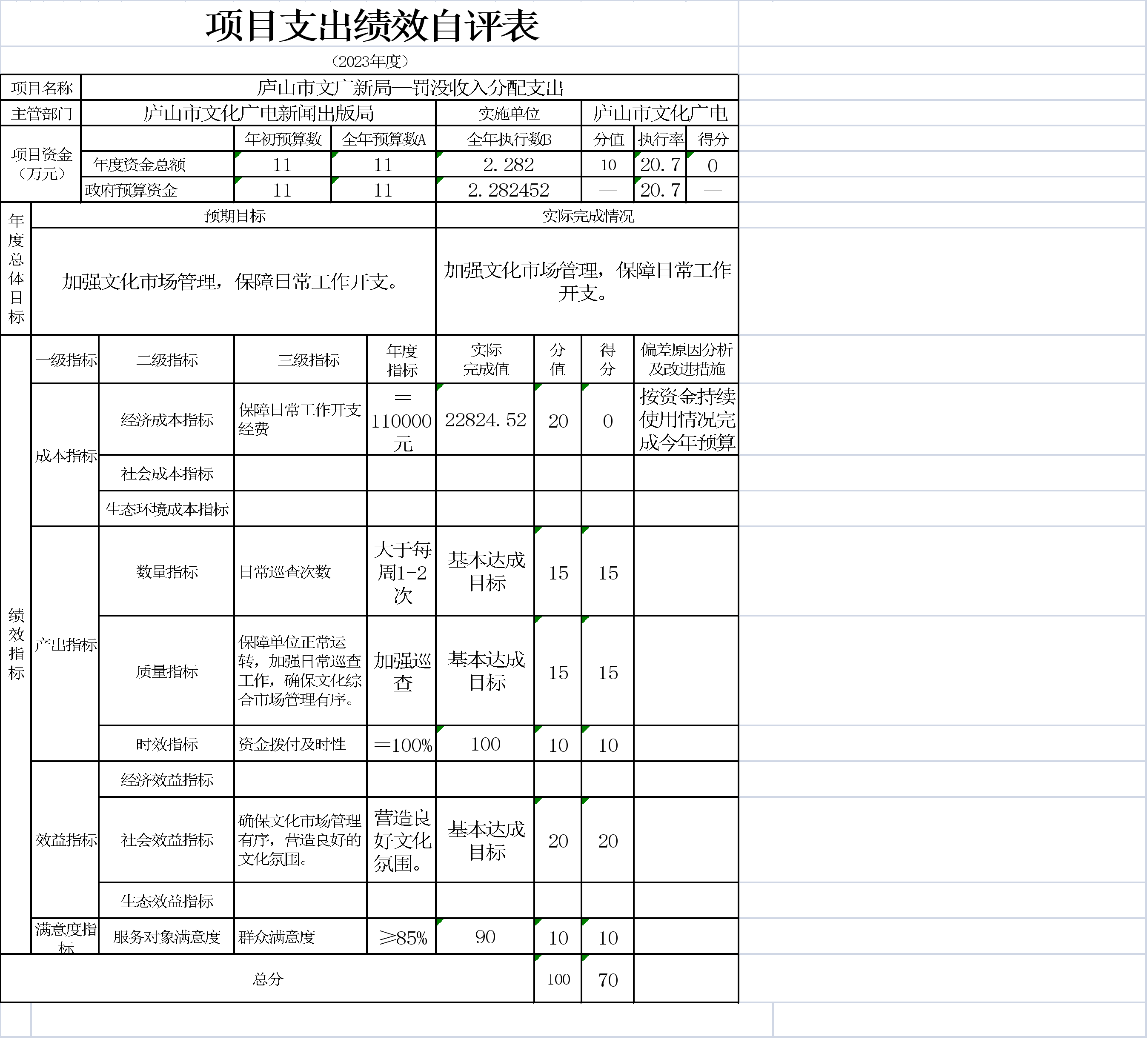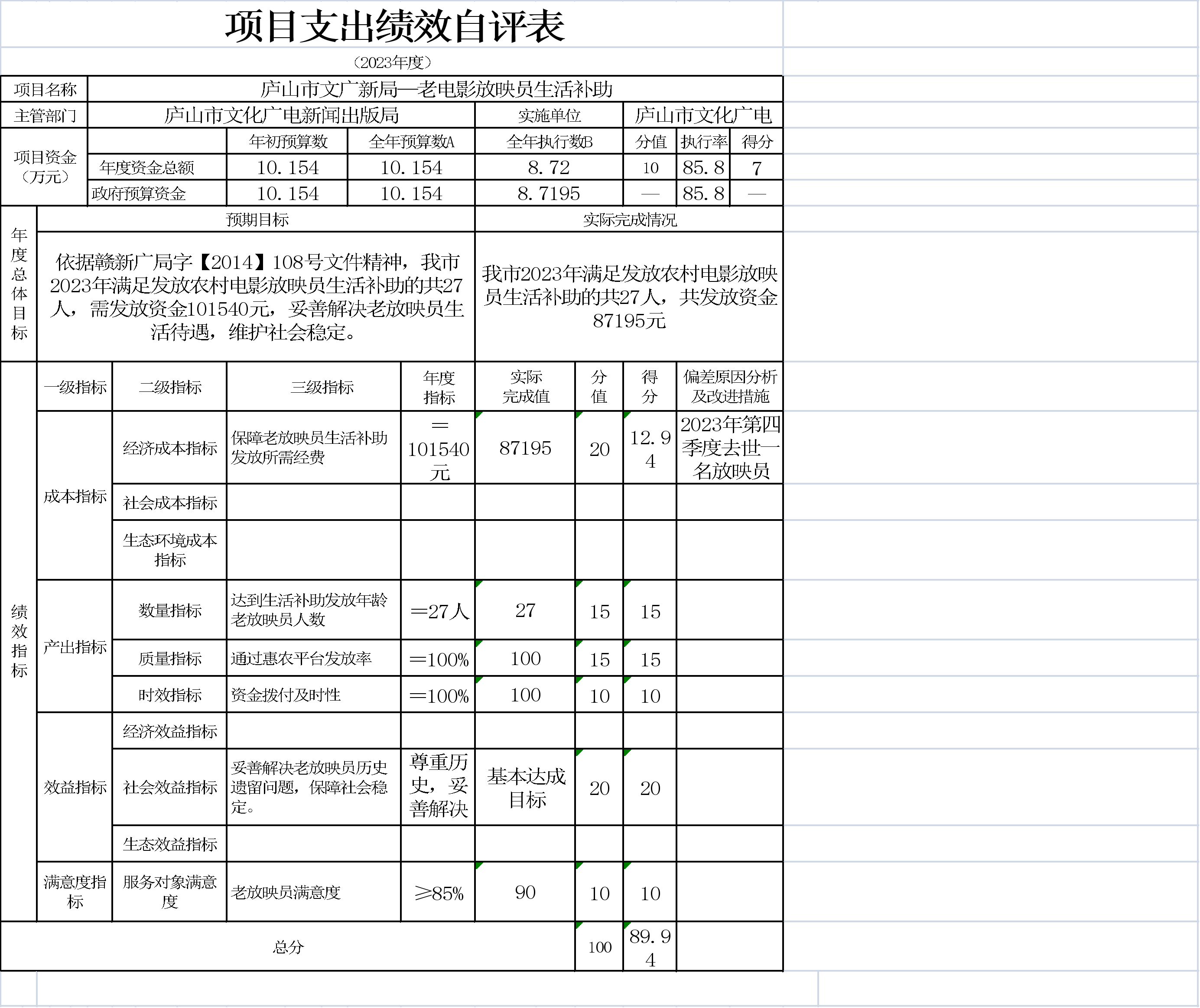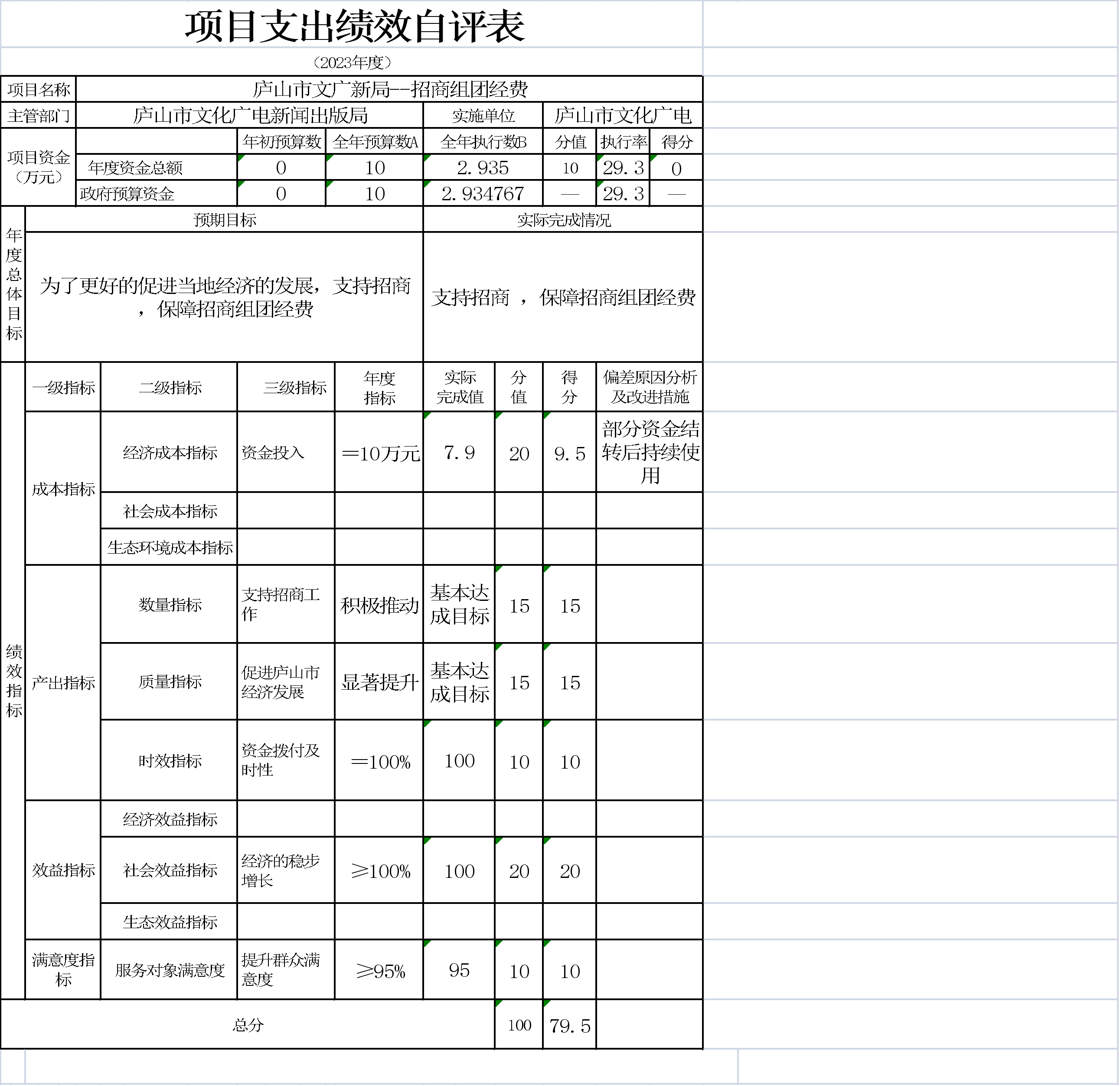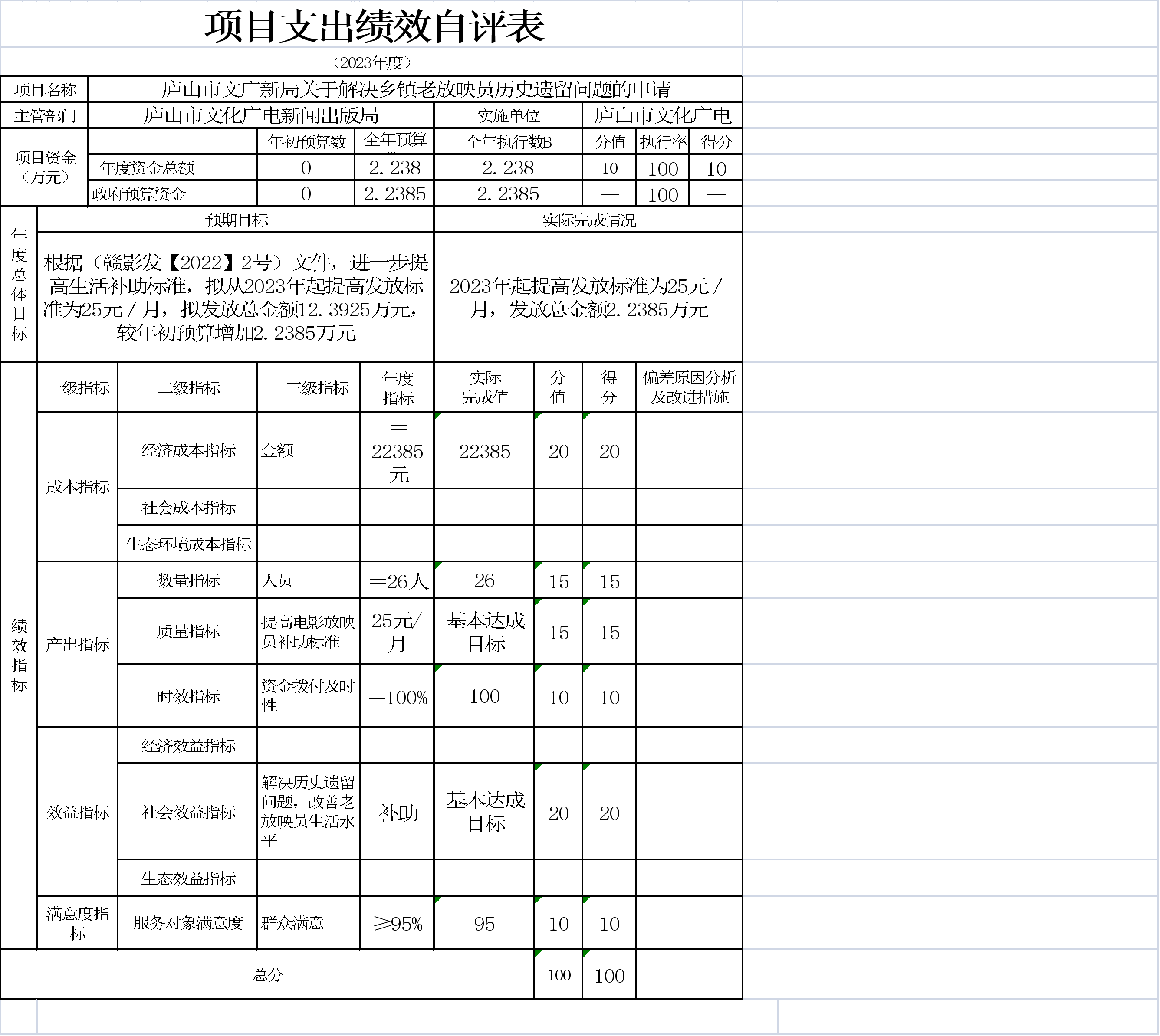 本单位项目支出绩效自评表如下: