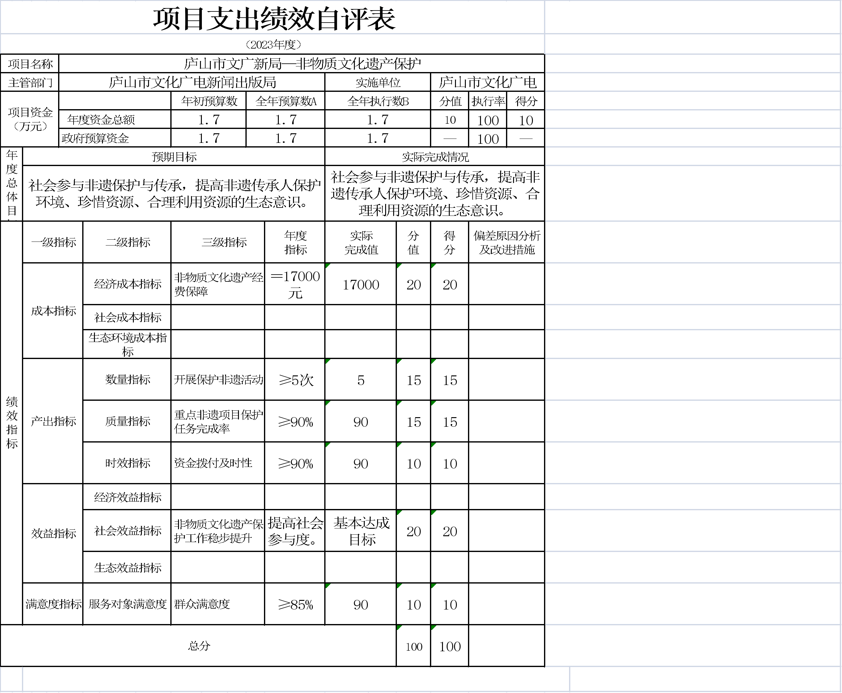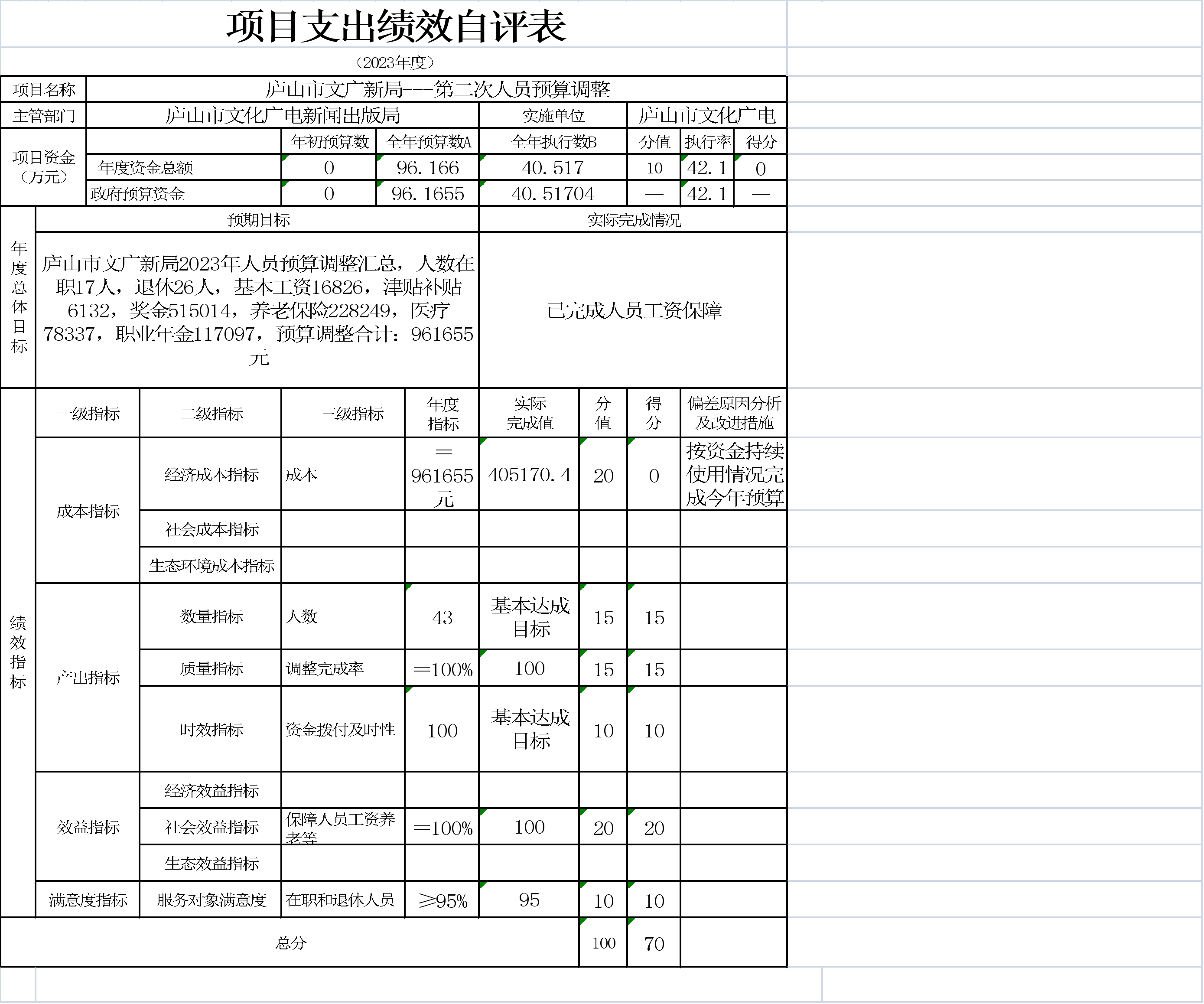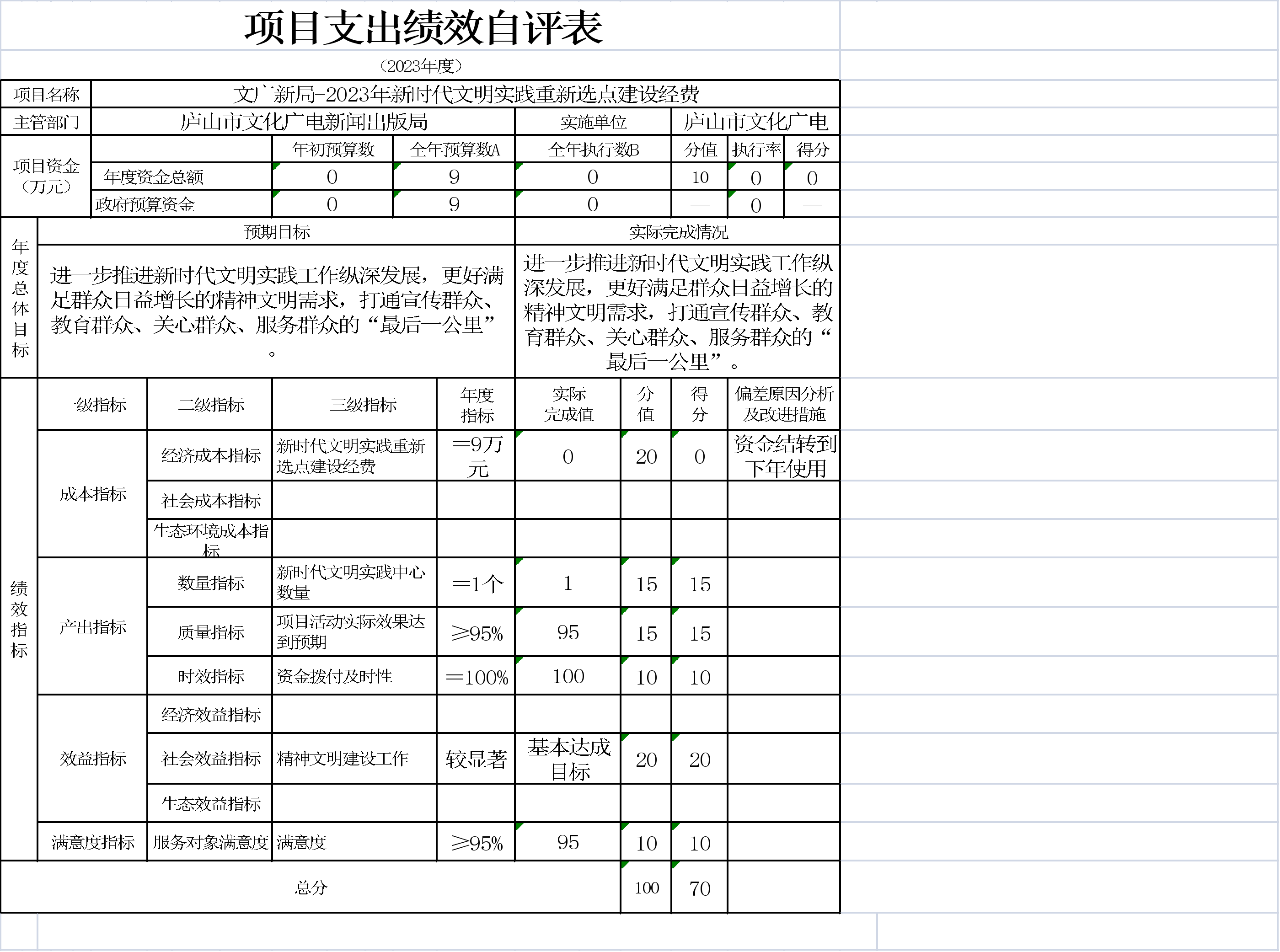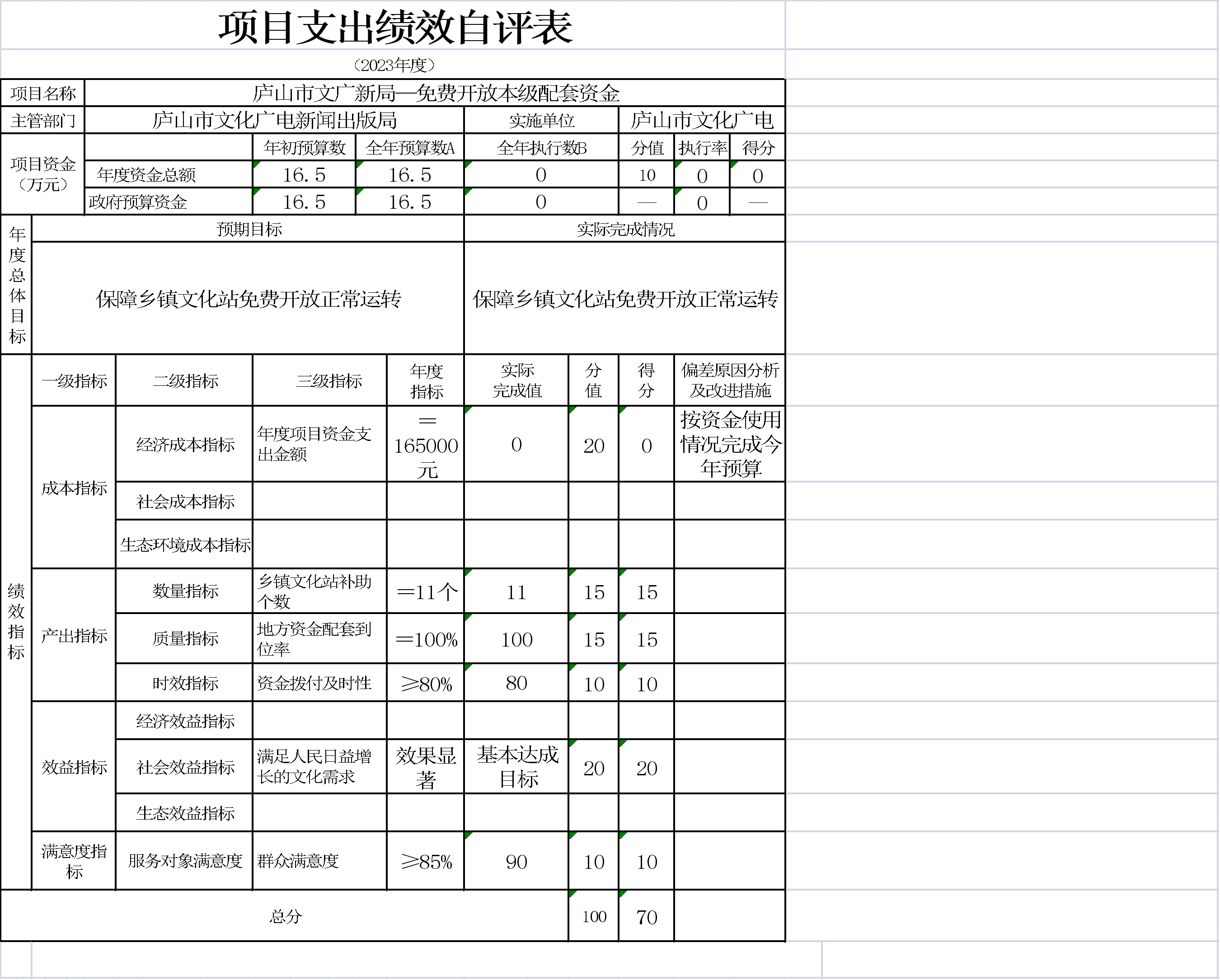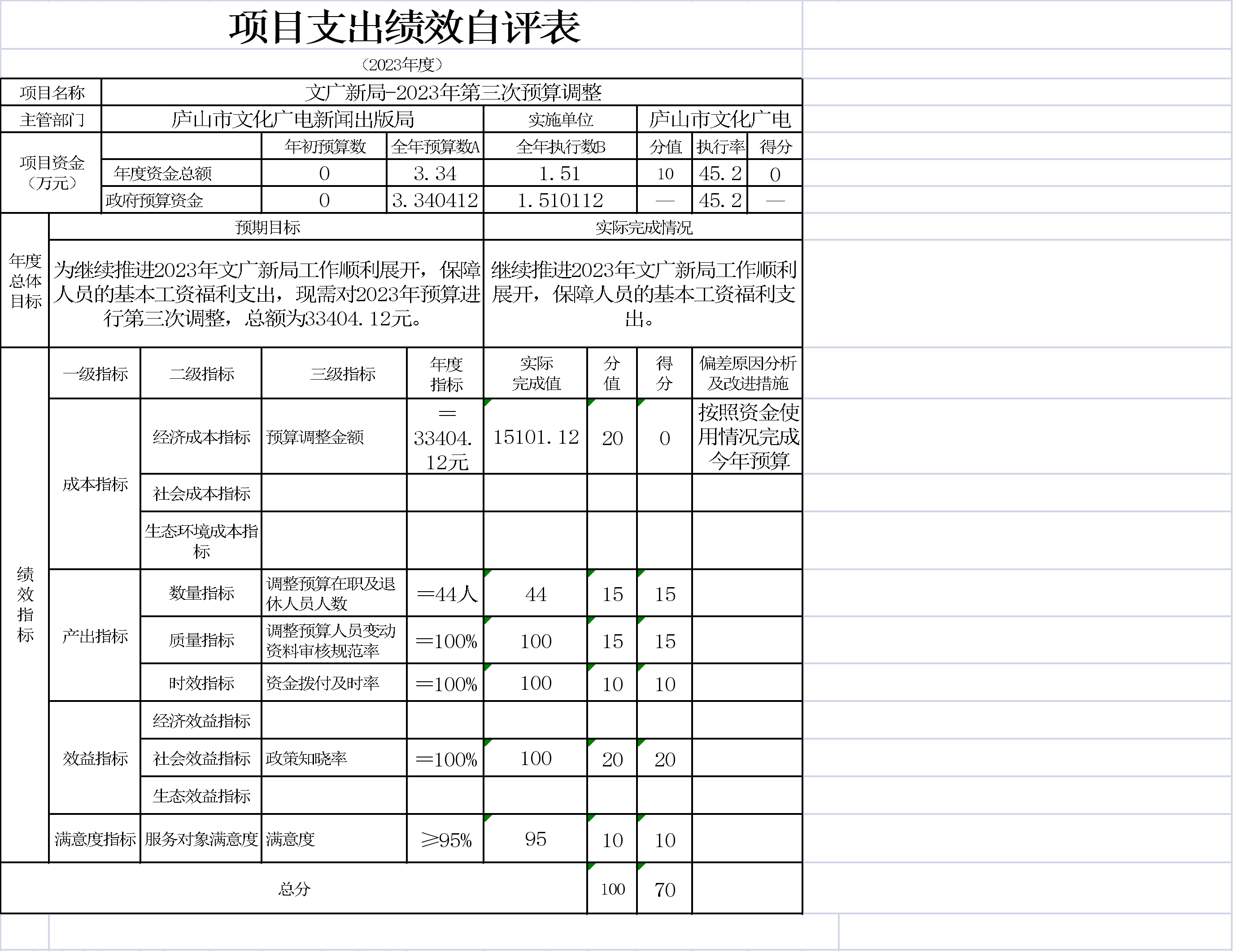 本单位项目支出绩效自评表如下: