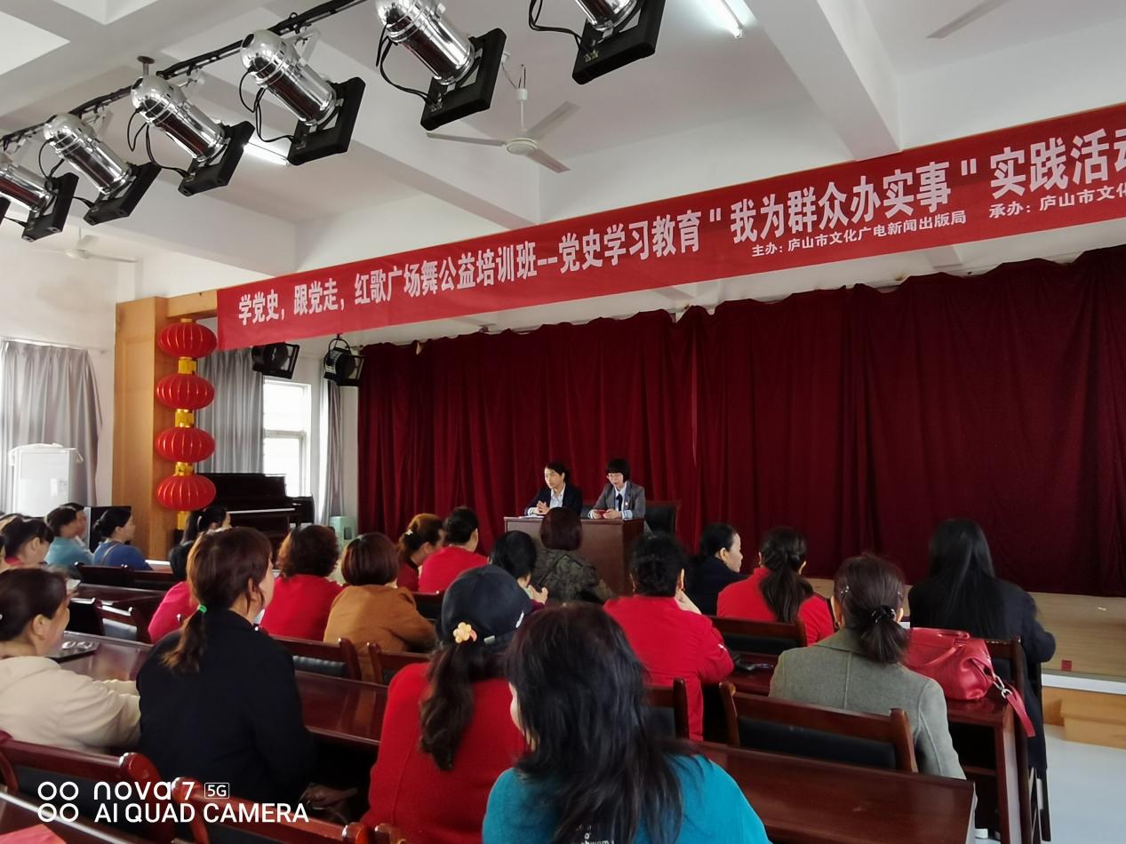 为了庆祝建党一百周年,更好迎接即将到来的“舞动赣鄱颂党恩”广场舞展演和“唱支山歌给党听”歌咏比赛活动,庐山市文化馆了解到一部分跳广场舞的队员希望有规范统一的舞蹈教学需求,特别聘请了舞蹈和声乐教师开设了红歌广场舞培训班,为学员们进行规范教学,这也是庐山市文广新局结合党史学习教育宣传“我为群众办实事”的系列举措之一。