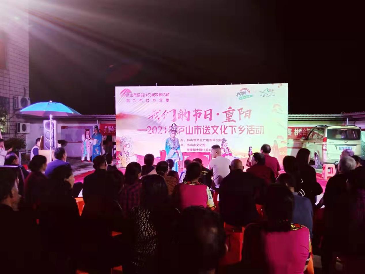 九九重阳节,浓浓敬老情。在重阳佳节之际,庐山市文化广电新闻出版局主办、市文化馆和南康镇大塘村委会承办的“我们的节日·重阳”暨2021送文化下乡活动在村委会门口精彩上演。让农村老年人在家门口就能欣赏到精彩的戏曲演出,为老人们送上节日的问候和美好的祝愿。
