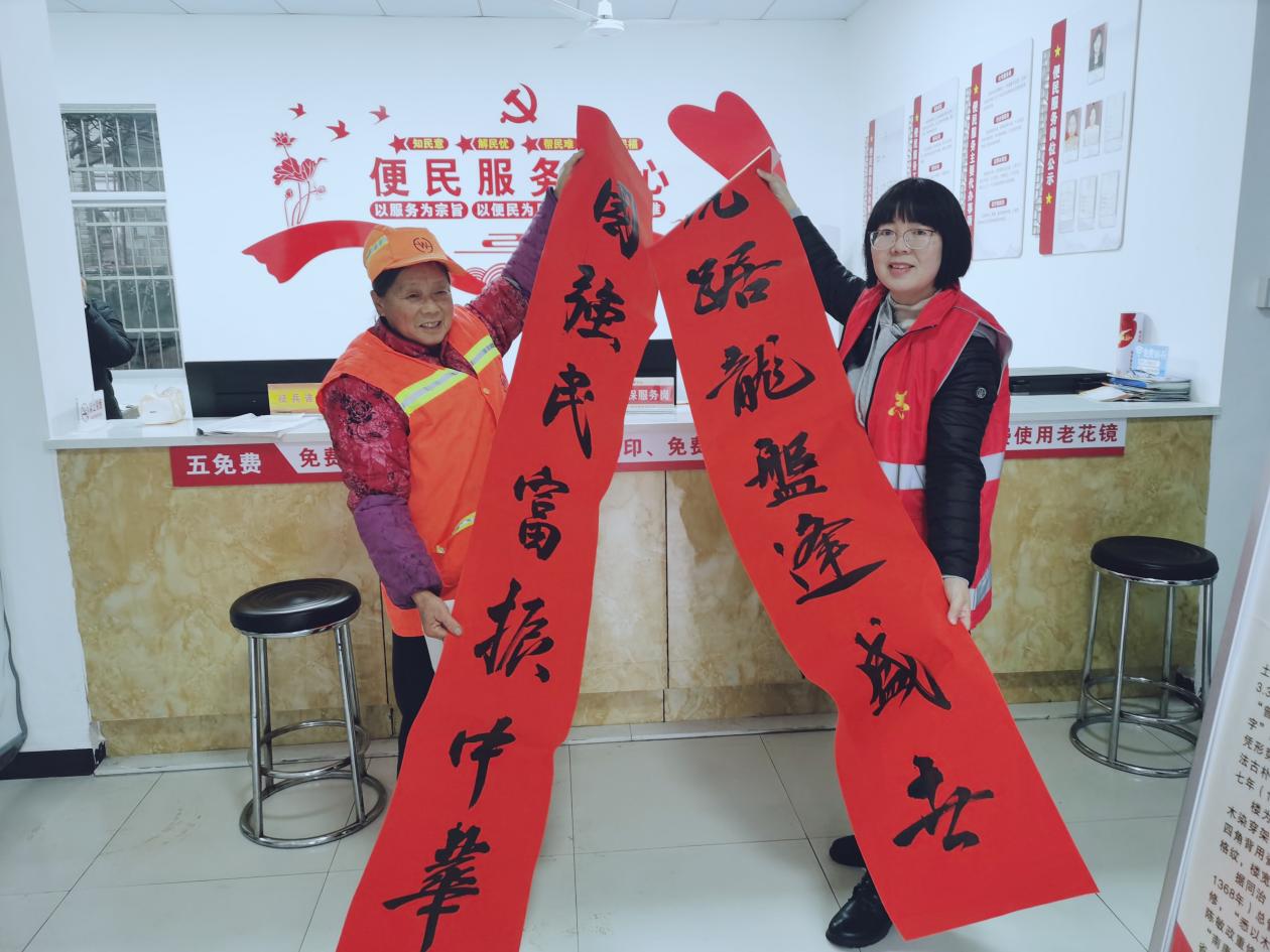载美好祝福的春联在书法老师的笔下精心而成,一副副寓意吉祥欢乐的春联挂满现场,洋溢着春节的喜庆氛围。书法老师们在欢声笑语中共书写春联700多副,赠送给当地群众,表达新春的美好祝福,同时留住了手写春联的传承,留住了过年的记忆。